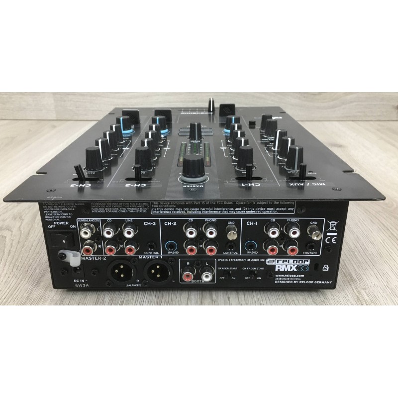 Il Reloop RMX33i è un mixer digitale professionale per DJ dotato di 3 canali +1, con 4 effetti di qualità, ingresso split per ipad e tablet, eq a tre bande con modalità crush o isolator, crossfader a 45 mm, fader start-reverse con regolazione della curva, uscite in formato XLR, 2 uscite cuffie, ingresso microfonico e tanto altro