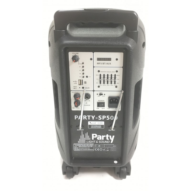 LA BST Party SP500 è una cassa attiva che ha tutto il necessario per diverstiri con gli amici: due radimicrofoni, effetto incorporato, lettore di file multimediali via USB ed un cono da 12 pollici che si illumina a ritmo di musica, facile e pratico da trasportare