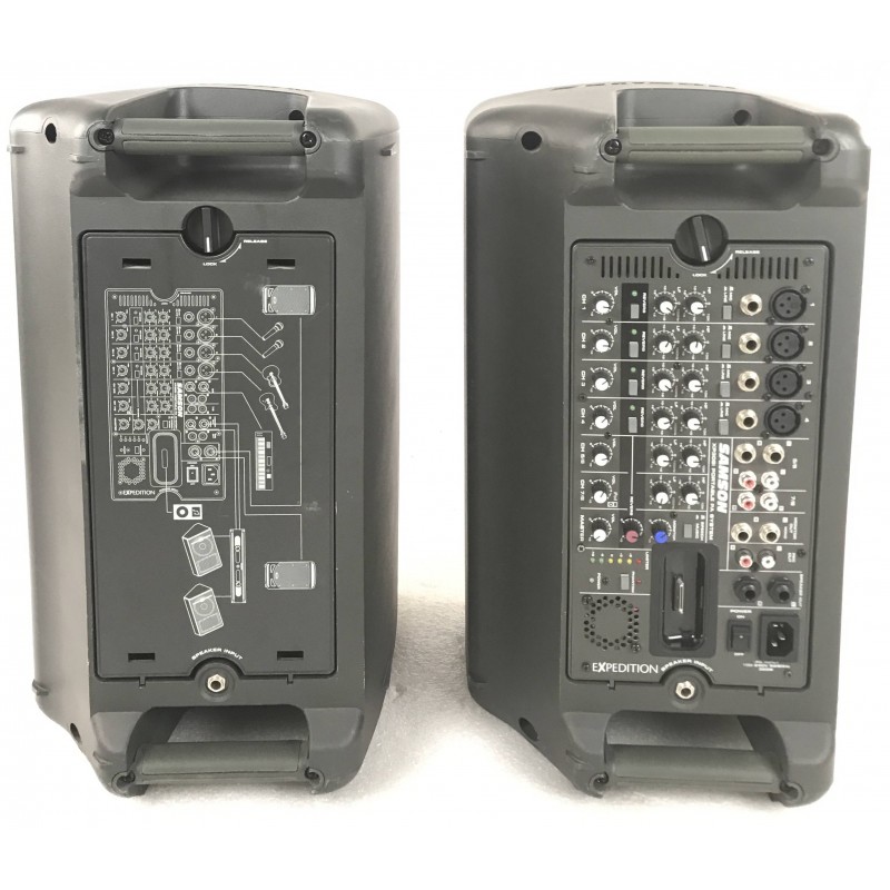 Il Samson Expedition XP308i è un sistema di amplificazione completo formato da due casse con cono da 8 pollici che integrano un mixer 8 canali di cui 4 microfonici, ingressi di linea ed un ingresso dedicato per sistemi ios con connessione dock.