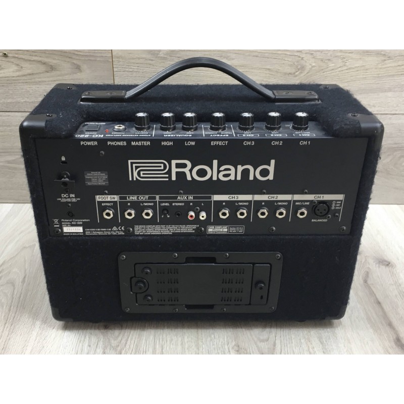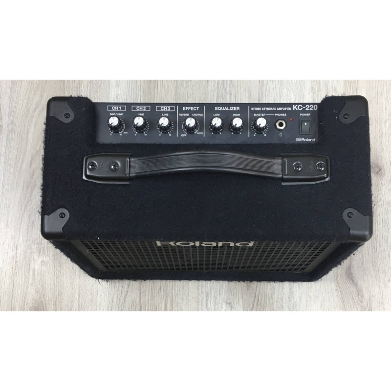 Il Roland KC-220 è un'amplificatore stereofonico per tastiere utile sia in live che per esercitarsi. Dotato di due tweeter e due altoparlanti da 6,5" da 15W ognuno, sprigiona una potenza massima di 30W, 3 canali indipendenti con controllo del volume, ingresso aux stereo, uscita cuffie ed effetti integrati quali: EQ, riverbero, chorus e wide chorus. Ottima anche come mini PA grazie agli effetti DSP interni, all'ingresso ausiliario dedicato e al supporto per un microfono per la voce tramite presa XRL. Offre infine la possibilità di doppia alimentazione grazie al vano batterie che ne contiene 8 di tipo AA.