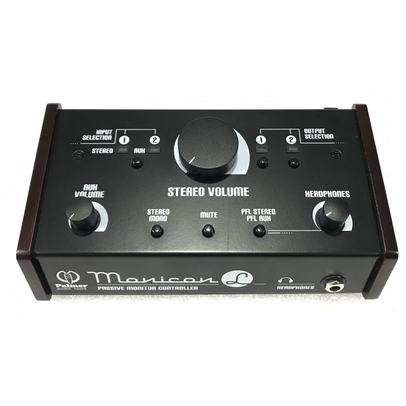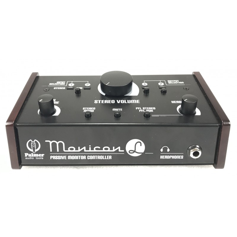 Il Palmer Monicon L è un regolatore di volume analogico dotato di due ingressi e due uscite indipendenti, uscita cuffie con volume separato, switch di muto, somma mono con uscita indipendente e pfl, un potenziometro grande e preciso per la regolazione del volume, uscite in formato XLR bilanciato e fianchetti in legno