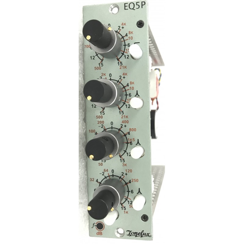 Tonelux EQ5P è un equalizzatore parametrico a 4 bande in formato modulo 500 costruito con elementi discreti con gli speciali opamp di tonelux