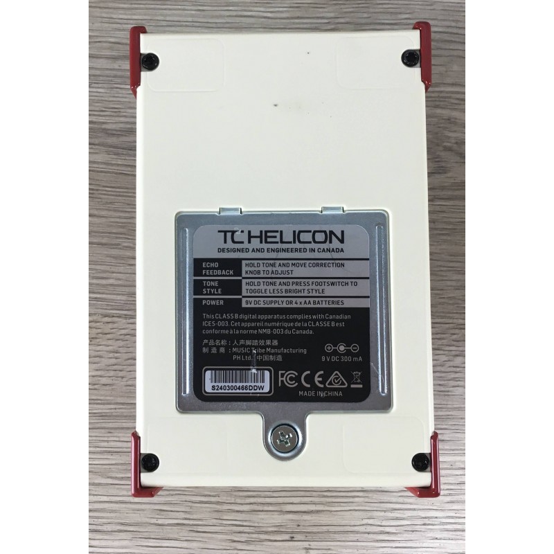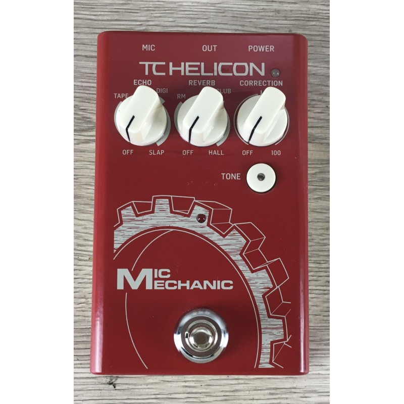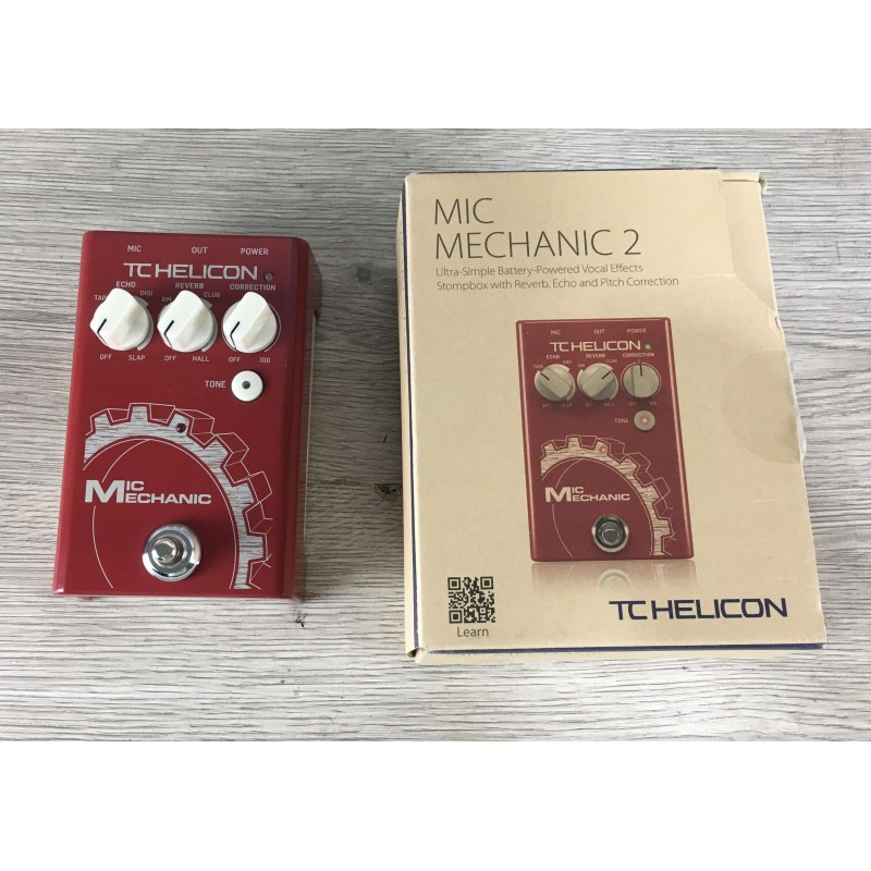 Il Tc Helicon Mic Mechanic 2 è un pedale effetto per la voce, compatto e facile da usare, con doppia alimentazione a batterie o compatibile con alimentatore per pedaliere standard da 9V e con alimentazione phantom 48V. Il Mic Mechanic 2 è in grado di attribuire alla voce effetti di riverbero, delay e pitch correction naturale modificabili separatamente attraverso i controlli presenti sul pedale. Premendo il tasto "tone" è in grado di correggere e adattare la voce modificando i parametri di EQ, compressione, de-essing e gating.