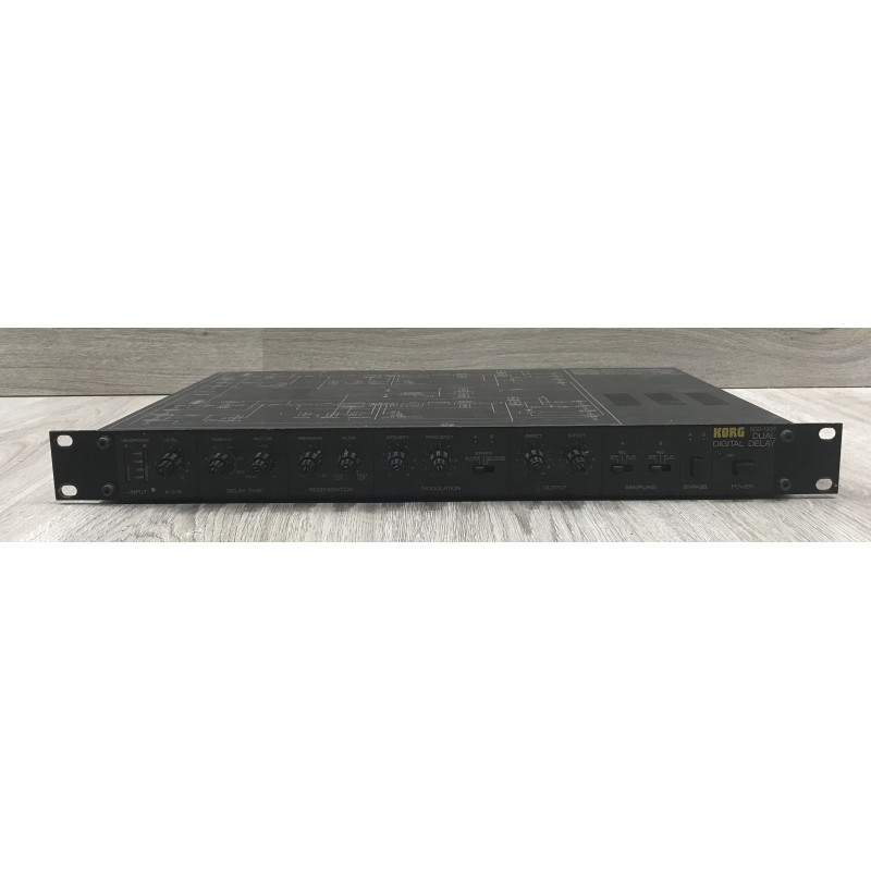 Il Korg SDD-1200 è un processore delay digitale vintage formato rack a doppia linea, capace di tempi di ritardo da 0,5 a 1024 millisecondi, ideale per echo rapidi o lunghi. Ogni linea dispone di controllo feedback e modulazione LFO, permettendo effetti come chorus, flanger e vibrato. La qualità sonora a 12 bit e i filtri hi‑cut/lo‑cut conferiscono un timbro caldo e musicale tipico degli anni '80. Le due linee possono essere usate in parallelo o in serie, con possibilità di delay stereo, ping-pong e cross-feedback. È uno strumento versatile per studio e live, capace di creare atmosfere complesse e sonore ricche.