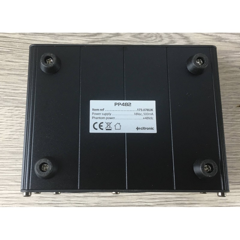 Il Citronic PP482 è un'unità di phantom power +48 V per microfoni a condensatore. Dispone di ingressi e uscite XLR bilanciati per collegamenti professionali privi di interferenze. Compatto e plug?and?play, funziona con alimentatore esterno incluso ed è ideale per setup da studio o live. Offre filtraggio interno del rumore e protezioni contro sovratensioni per garantire segnale pulito e affidabile.