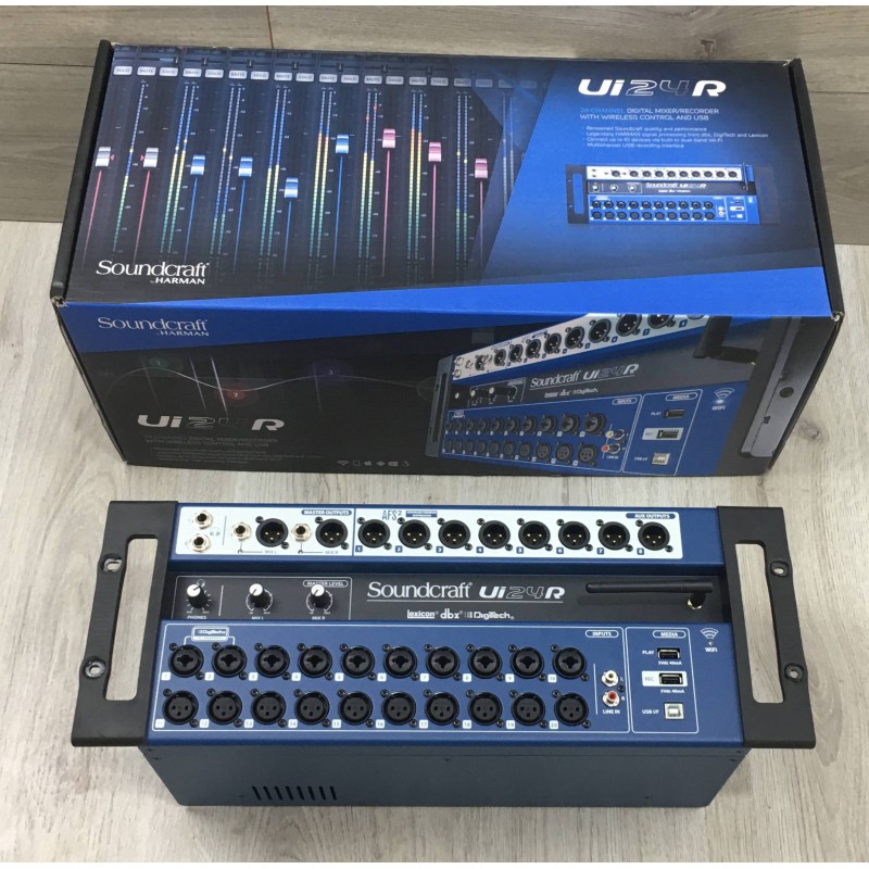 Il Soundcraft Ui24R è un potente mixer digitale rack 4U controllabile via WiFi o Ethernet da browser. Offre 24 canali, con 20 preamplificatori Studer e effetti Lexicon e DigiTech integrati. Permette registrazione multitraccia duale (USB + computer) e fino a 10 dispositivi di controllo simultanei.