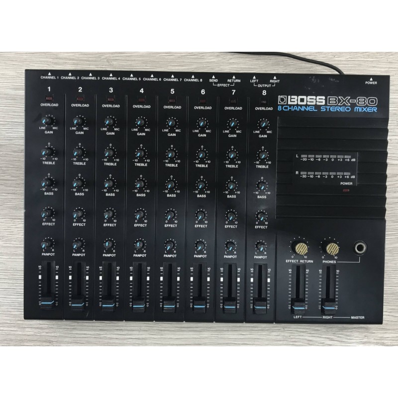 Il Boss BX-80 è un mixer vintage a 8 canali progettato per tastieristi e home studio, apprezzato per la sua saturazione analogica naturale. Ogni canale offre controlli indipendenti per guadagno, equalizzazione a due bande, mandata effetti e bilanciamento del panorama stereo. Dispone di indicatori LED per il monitoraggio dei livelli e un design compatto che lo rende perfetto per gestire setup con più sintetizzatori.