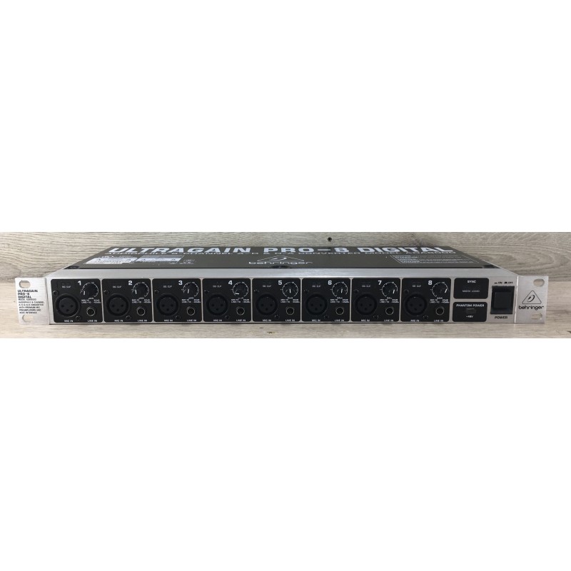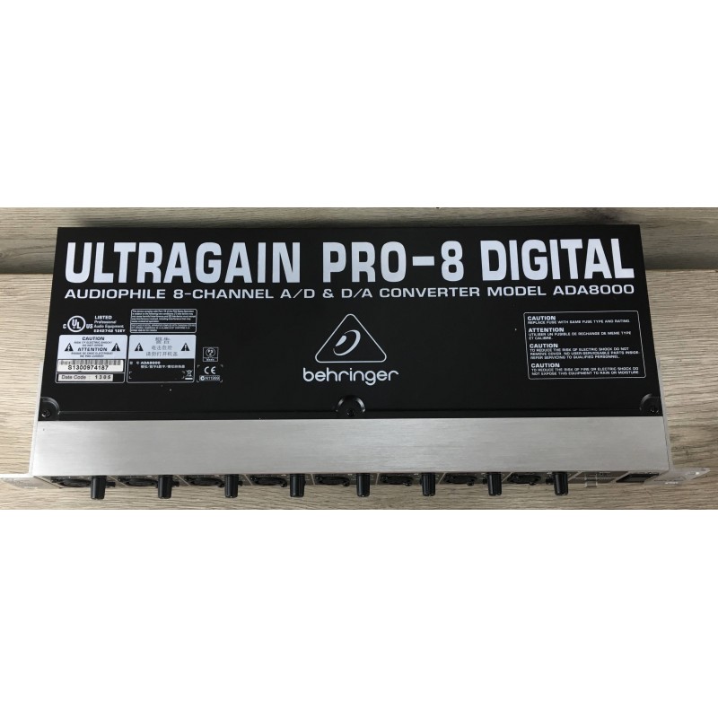 Il Behringer ADA800 Ultragain Pro Digital è un preamplificatore microfonico 8 canali che funge anche da convertitore AD/DA su cavo ADAT Toslink. è Dotato di 8 ingressi con preamplificatore micrfonico e di linea con phantom power e 8 uscite bilanciate in formato cannon XLR, supporta una frequenza di campionamento fino a48 Khz ed è possibile utilizzarlo come Master o come Slave collegandolo via ADAT o via wordclock ad un altro apparecchio digitale