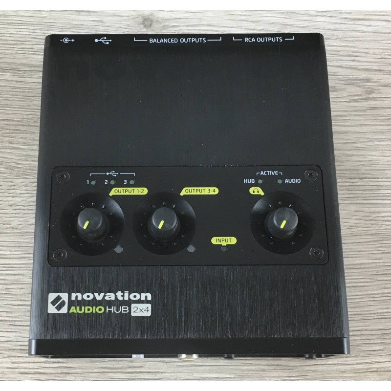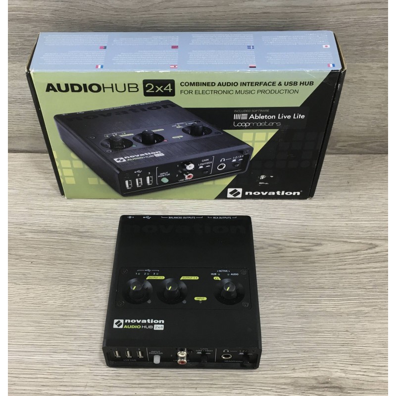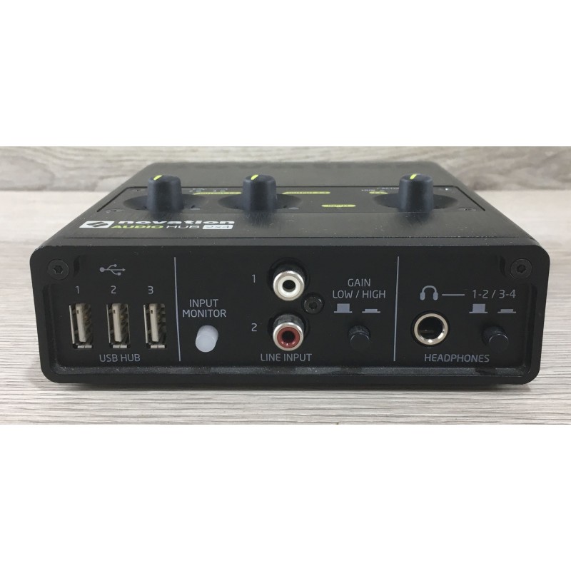 La Novation Audiohub 2 X 4 è una scheda audio per rec USB di alta qualità con convertitori che arrivano fino a 96 khz 24 bit. Due ingressi RCA, 4 uscite indipendenti in formato RCA e Jack bilanciato, convolumi indipendenti, tre ingressi USB per il collegamento di altre periferiche. compatibile con PC e Mac è costruita per essere solida, resistente ma leggera