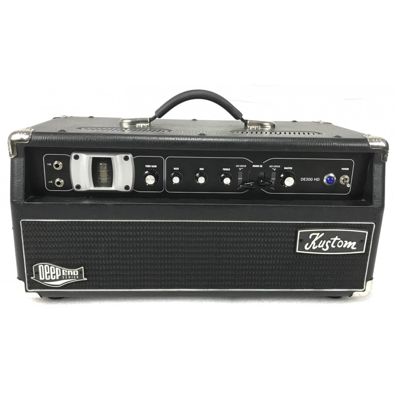 Kustom Deep End 300HD è una testata per basso con preamplificatore valvolare che può ergare una potena di 300W, pochi controlli con i quali si possono ottenere tutti i timbri desiderati dal pop ai suoni più aggressivi.