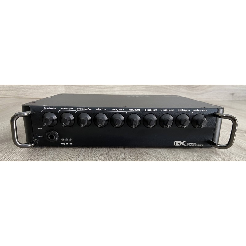 La Gallien Krueger 500S Fusion è una testata 500W per basso classe D con preampi valvolare estremamente leggera e con corpo in alluminio. Equalizzatore a 4 bande attive e overdrive pilotabile mediante footswitch incluso. Pulsanti illmiati con comandi Voice, Cut, Body, Bound, Contour e Presence. Uscita XLR bilanciata con Pre e Post EQ selezionabili, send e return 1/4" non bilanciati, aux input, uscita cuffie e uscita per speacker twist lock.