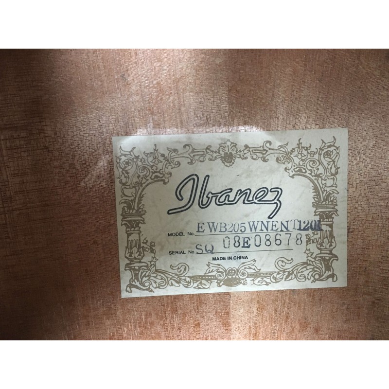 L'Ibanez EWB205WNENT1201 è un basso acustico elettrificato a 5 corde, prodotto intorno al 2008 e oggi piuttosto raro. Ha scala da 34”, tastiera in palissandro e corpo in finitura Natural Transparent Brown. Monta elettronica Ibanez/Fishman (pickup Sonicore con preamp SST, XLR e jack) per l'uso amplificato. Strumento leggero , versatile per contesti acustici e live, con estensione fino al Si grave.