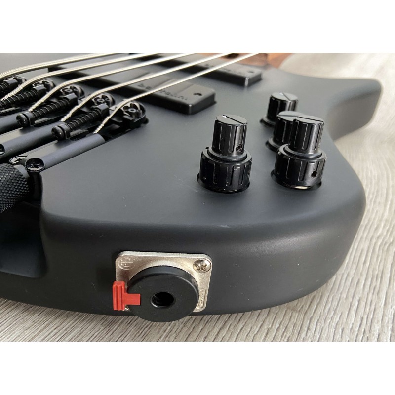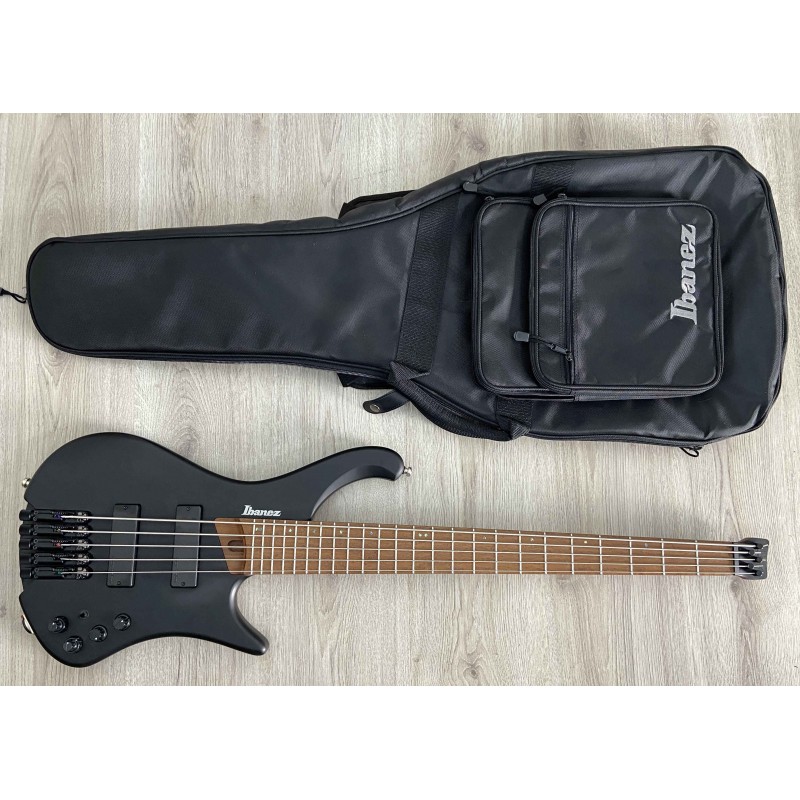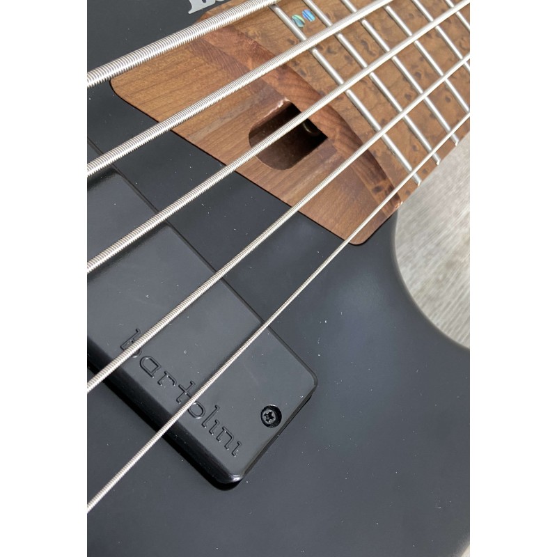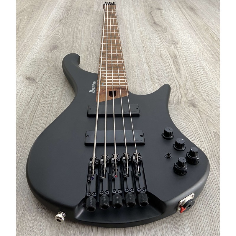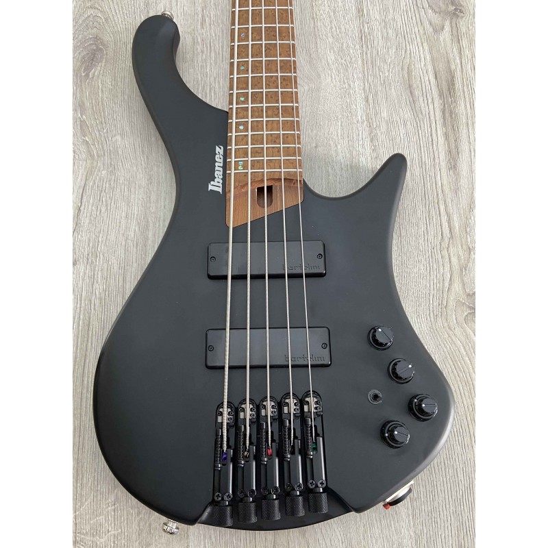 L'Ibanez EHB1005 Black Flat è un basso elettrico 5 corde ultra ergonomico che grazie al suo contour permette di mantenere la stessa posizione sia in piedi che seduti, e dal design headless molto ricercato. Costruito con corpo in tiglio americano, manico in noce con rinforzo in grafite e tastiera in acero, presenta intarsi laterali luminescenti che insieme alla finitura Black Flat impreziosiscono lo strumento. Controlli del volume e diverse possibilità di equalizzazione grazie ai controlli presenti sul body. Due pickup Bartolini BH2 passivi.