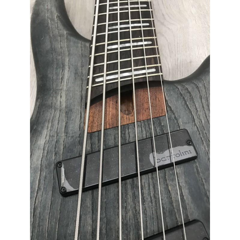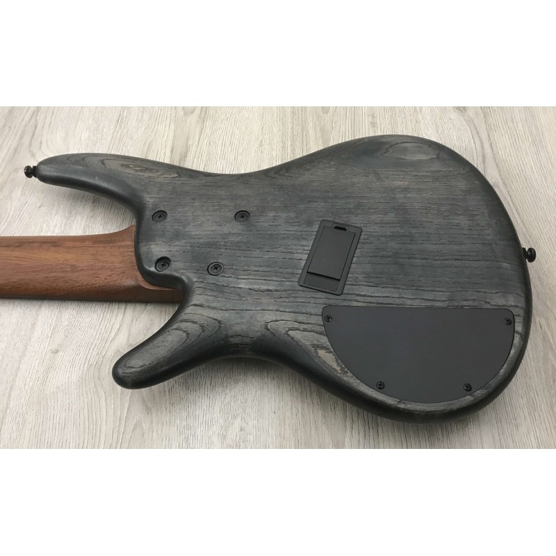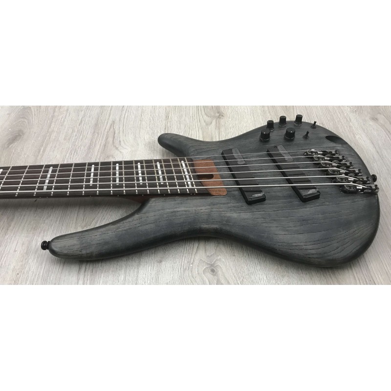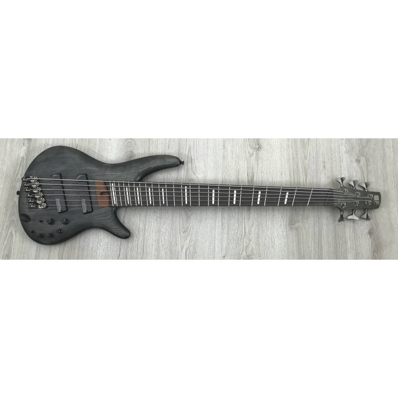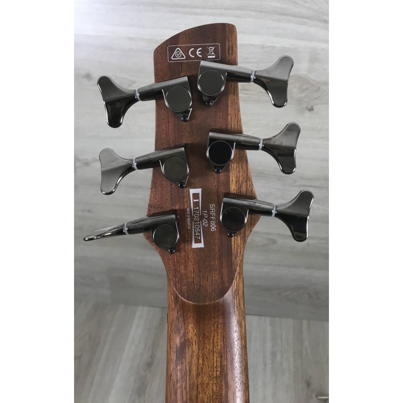 L'Ibanez SRFF806 BKS Black Stained è un basso elettrico 6 corde con corpo in frassino, manico 5 pezzi in jatoba e bubinga, tastiera in palissandro con tasti fanned, ponte mono rail V, elettronica con pickup bartolini BH1 con e-3