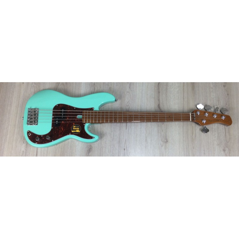 Il Sire Marcus Miller P5 Alder 5 MLG Mild Green è un basso elettrico 5 corde solid body in stile precision ma costruito per offrire la possibilità di ottenere sonorità sia vintage che moderne. Corpo in ontano nordamericano, manico e tastiera in acero tostato, elettronica con controllo volume e tono
