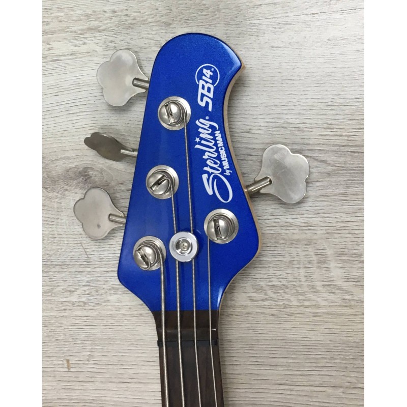 Sterling SB14 Blue Pearl è un basso elettrico passivo a 4 corde dal suono caldo e dinamico, con humbucker Alnico V e controlli volume e tono per una timbrica versatile. Ha scala 34”, 22 tasti, manico in acero con tastiera in palissandro e design ispirato ai classici Music Man, con finitura Blue Pearl.