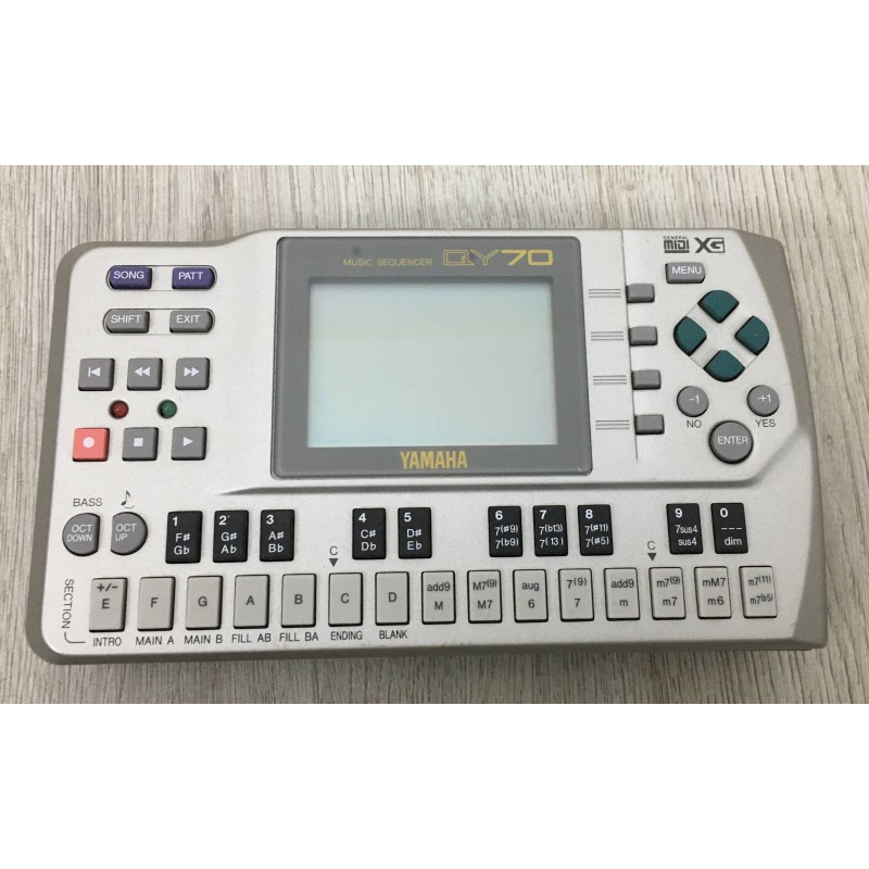 Lo yamaha QY-70 è una piccola e sofisticata unità musicale all in one che include tutto il necessario per produrre un brano: motore sonoro, sequencer, effetti, pattern ritmici pre compilati e modificabili, mixer ecc...Questo fantastico apparecchio è anche un modulo sonoro compatibile con standard GM e XG con una vastissima libreria di suoni