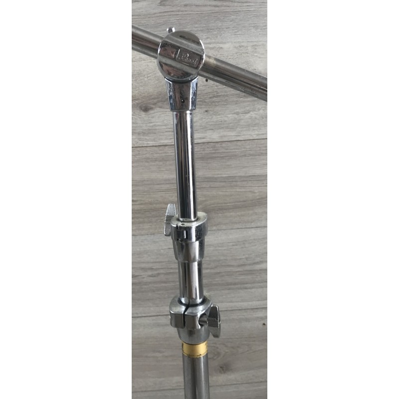 Questa asta per piatti a giraffa Pearl, appartenente alle serie professionali degli anni '80/'90, è progettata per la massima stabilità con piatti di grandi dimensioni. La struttura in acciaio cromato a tre sezioni include gambe a doppia staffa e un contrappeso trapezoidale per bilanciare ride o crash pesanti senza oscillazioni. È dotata di inclinatore Uni-Lock per una regolazione fluida dell'angolazione e può essere convertita in asta dritta facendo rientrare il braccio.
