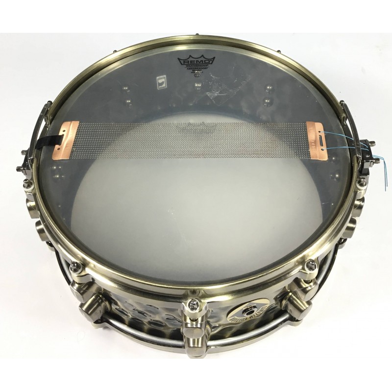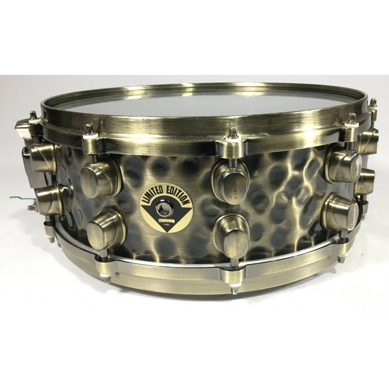 Il Mapex Black Panther Hammered Brass Limited Edition è un rullante in metallo martellato 14 X 6,5 pollici con un suono caldo, definito, sensibile al tocco ed con un incredibile volume