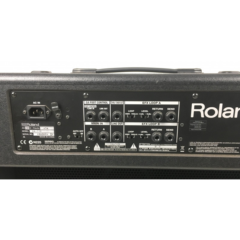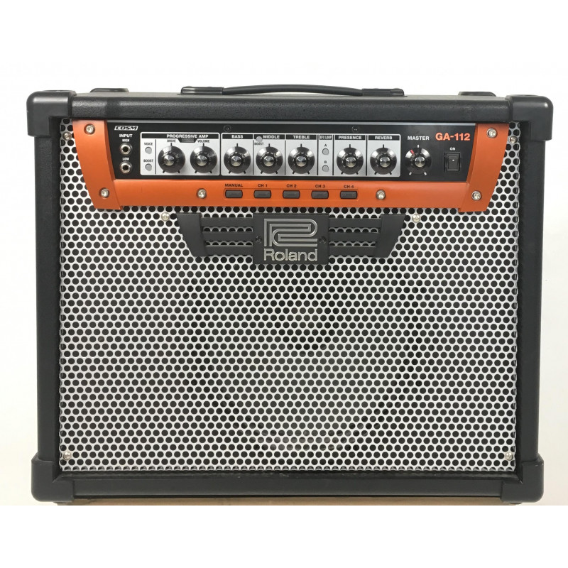 Il Roland GA-112 è un combo a transistor per chitarra dalla potenza di 100W. A differenza di altri amplificatori digitali il GA-112 non imita dei modelli presistenti ma fa del motore COSM il suo punto di partenza per avere un suono unico ed inimitabile. Estremamente semplice da utilizzare ed alla portata di tutti, è dotato di un eq a 3 bande, controllo gain e volume canale e controllo master, il boost permette un ingremento sul gain per pasare dal pulito al semidistorto, dal crunch al distorto e così via; il boost sui medi pemette di enfatizzare il suond ed avere ulteriori sfumature timbriche. 2 loop effetti ativabili e cono da 12 pollici roland