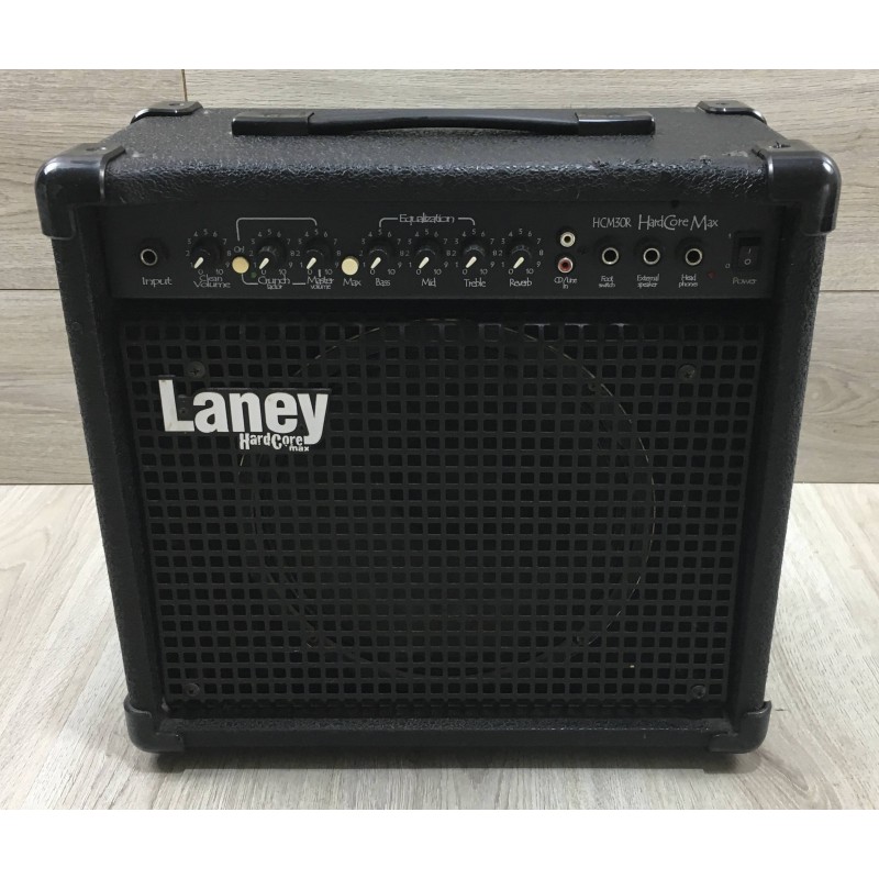 Il Laney HCM30R Hardcore Max è un combo 2 canali per chitarra 30 W con reverbero a molla incorporato, possibilità di collegare uno speaker esterno, eq a 3 bande, e distorsione con gain e volume separati boostabili attraverso il tasto Max. Piccolo e compatto è l'ideale per lo studio domestico e per piccole jam