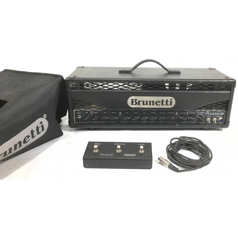 La Brunetti Valvemix Pirata 141 è una testata valvolare due canali Made in Italy per chitarra con la particolarità di montare contemporaneamente valvole 6L6 e EL34 dando la possibilità di scegliere il timbro di una coppia, dell'altra o miscelarle insieme nella proporzione desiderata. Suono potente e definito sia sui puliti che sui distorti, eq separato per ogni canale, doppio master gestibile da footswitch