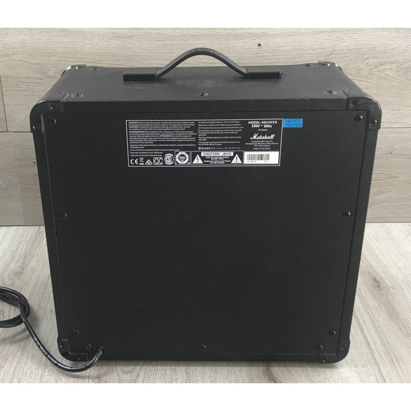 Il Marshall MG15FX è un amplificatore combo per chitarra elettrica 2 canali 15 W con controllo ed effetti digitali, è datato di un equalizzatore tre bande, un'unità effetto con effetti di modulazione, reverbero e delay e monta un cono da 8 pollici
