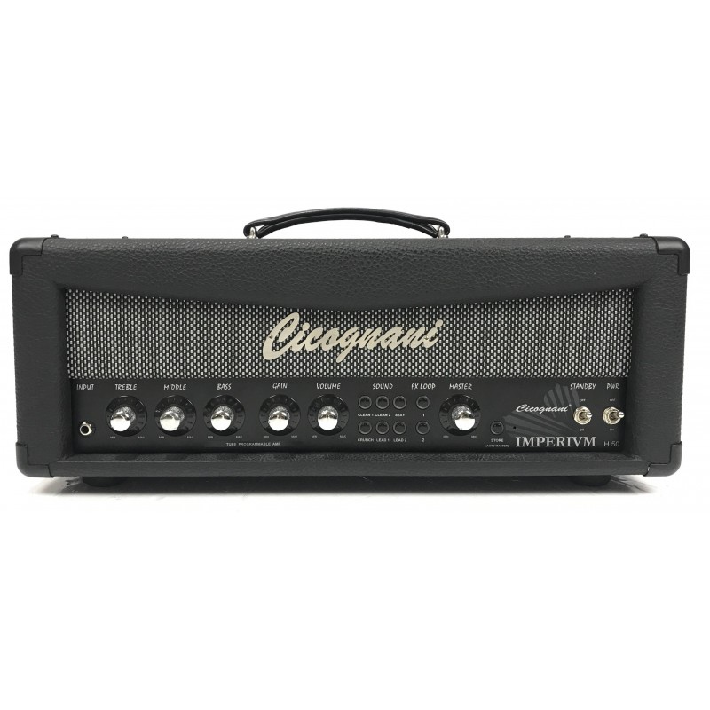 La Cicognani Imperium H50 è una testata valvolare per chitarra interamente programmabile e pensata per offrire la massima gestibilità, flessibilità nel minimo ingombro. Dotata di 6 diversi canali richiamabili via midi, è dotata di due loop effetti gestibili sempre via midi ed uno fisso, dispone anche di un ingresso e due uscite per alimentare i pedali esterni in modo da poterli lasciare vicino la testata e pilotarli con una pedaliera midi. Suoni che vanno dai puliti cristallini, ai lead più aggressivi passando per crunch cremosi