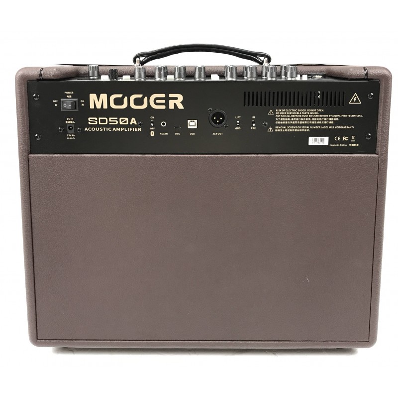 Il Mooer SD50A è un combo per chitarra acustica pensato per le performance dal vivo, dotato di un ingresso per strumento ed un ingresso microfonico ognuno con effetti ed equalizzazione indipendenti, cono da 8 pollici, tweeter, scheda audio USB integrata ed uscita diretta per smartphones o tablet
