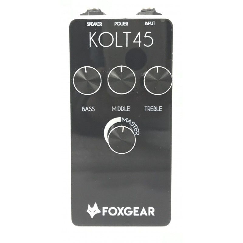Foxgear Kolt 45 è un amplificatore 45W su 4 hms per chitarra elettrica in formato pedale con eq a tre bande ed un timbro grosso e convincente ideale sia per lo studio che dal vivo