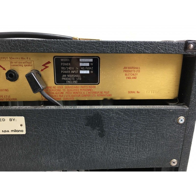 Il Marshall JCM800 4010 anno 1982 è un amplificatore combo valvolare con il classico suono plexi sentito in centinaia di dischi e usato da musicisti iconici di ogni epoca. Questo amplificatore ha gli ingressi verticali e monta un cono da 12 pollici
