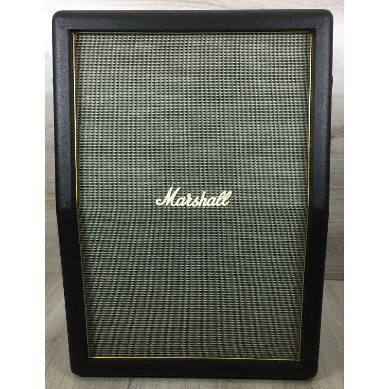 La Marshall Origin 212A è una cassa svasata per chitarra elettrica che monta due coni da 12 pollici Celestion Seventy 80 per una potenza totale di 160W su 8 ohms