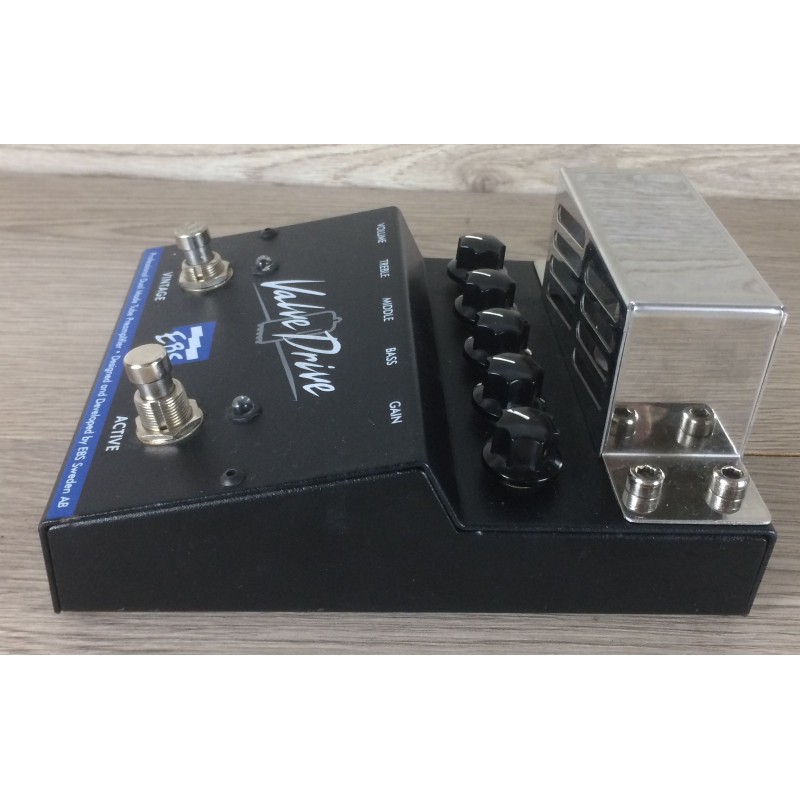 L'EBS valve drive è un preamplificatore valvolare per basso elettrico in formato pedale che include un overdrive analogico, eq a tre bande, controllo volume e gain e switch per selezione circuito vintage o moderno