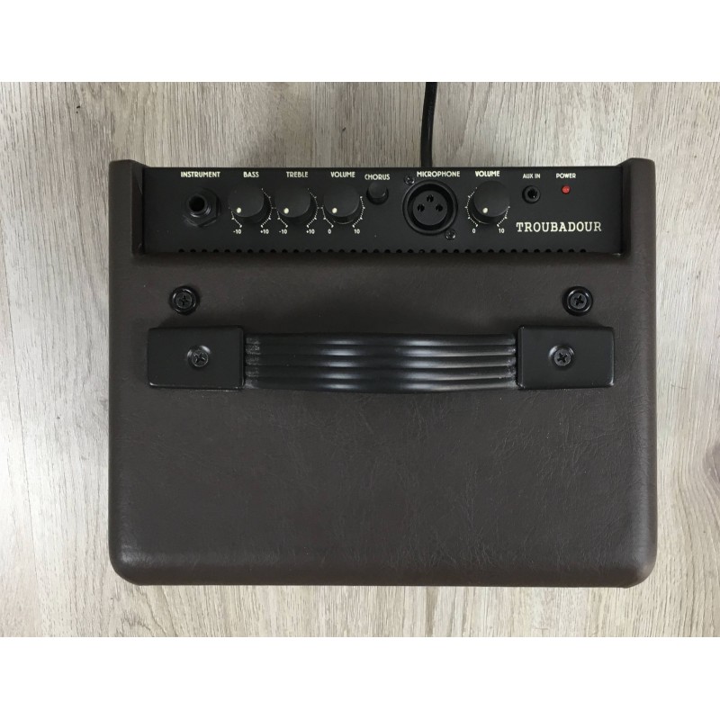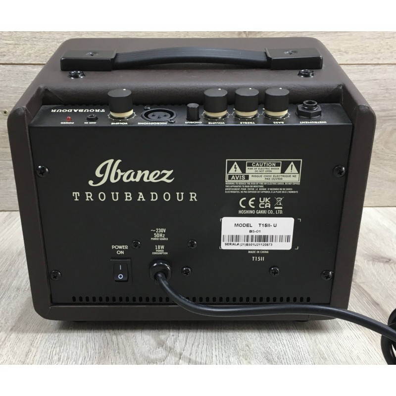 L'Ibanez Troubadour T15II è un amplificatore per chitarra combo da 15W progettato per chitarra acustica o elettroacustica, compatto e facile da trasportare. Dispone di due canali separati (strumento e microfono) con ingresso XLR e controlli di volume dedicati. Include equalizzazione a 2 bande sul canale chitarra ed effetto chorus integrato attivabile. Ideale per studio domestico, piccole esibizioni e situazioni acustiche intime.