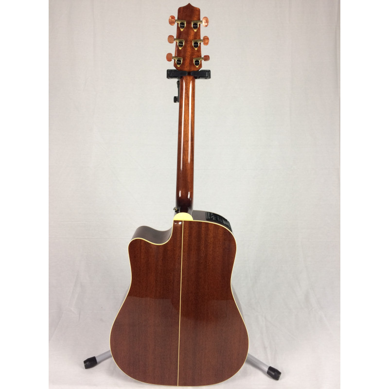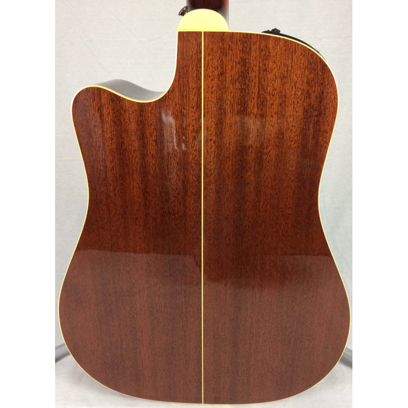 La Takamine TAC11C è uno strumento made in Japan di alta liuteria, ogni sua parte è curata nel minimo dettaglio. Questo strumento è una chitarra acustica amplificata Dreadnought Cutaway con Tavola Armonica in Abete massiccio, Fondo/Fasce in Mogano sapeli massiccio/Mogano e Tastiera in Palissandro. Il preamplificatore valvolare CTP-1 che monta di serie è stato sotituito con il CTP-2 migliorando così notevolmente la resa. La chitarra è in condizioni estetiche quasi pari al nuovo a parte qualche piccolo graffio segnalato in foto ed ha la sua custodia rigida originale in dotazione