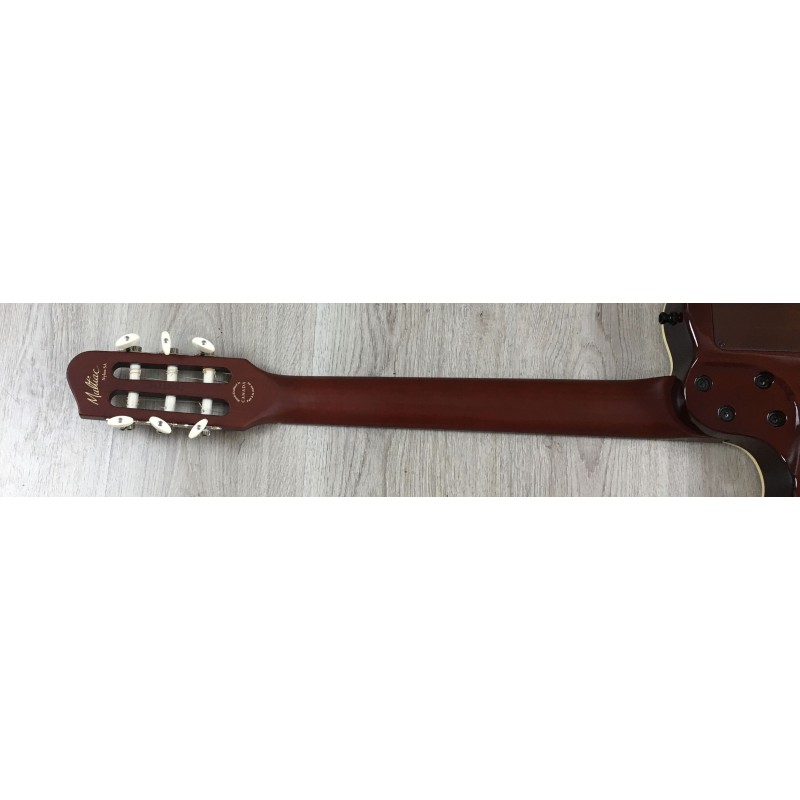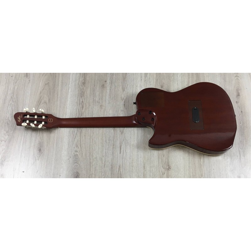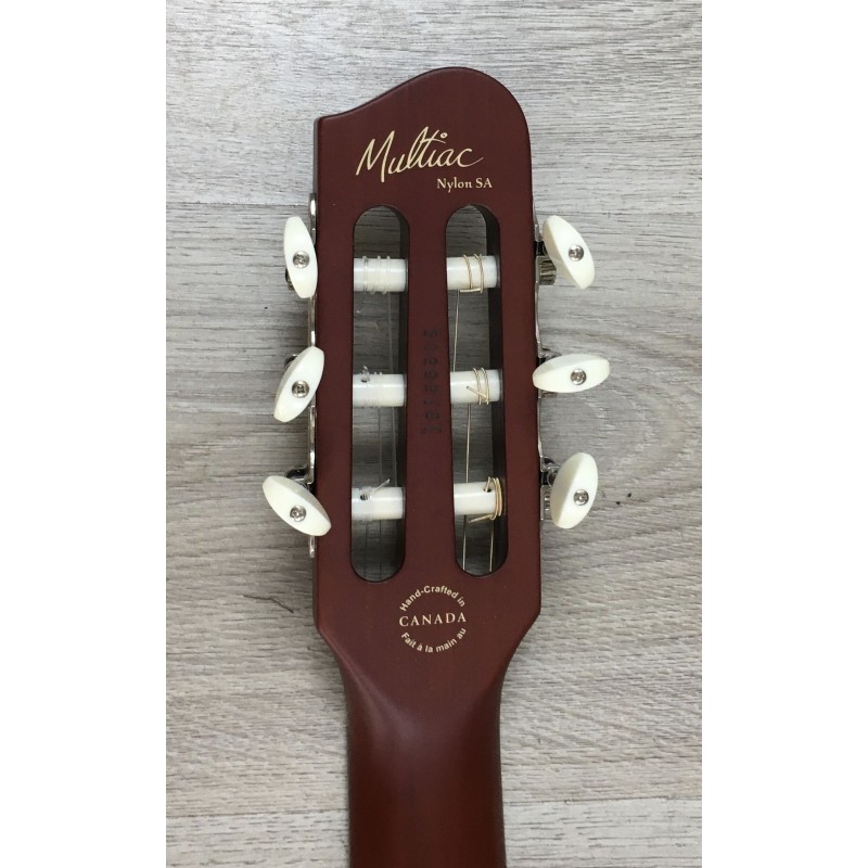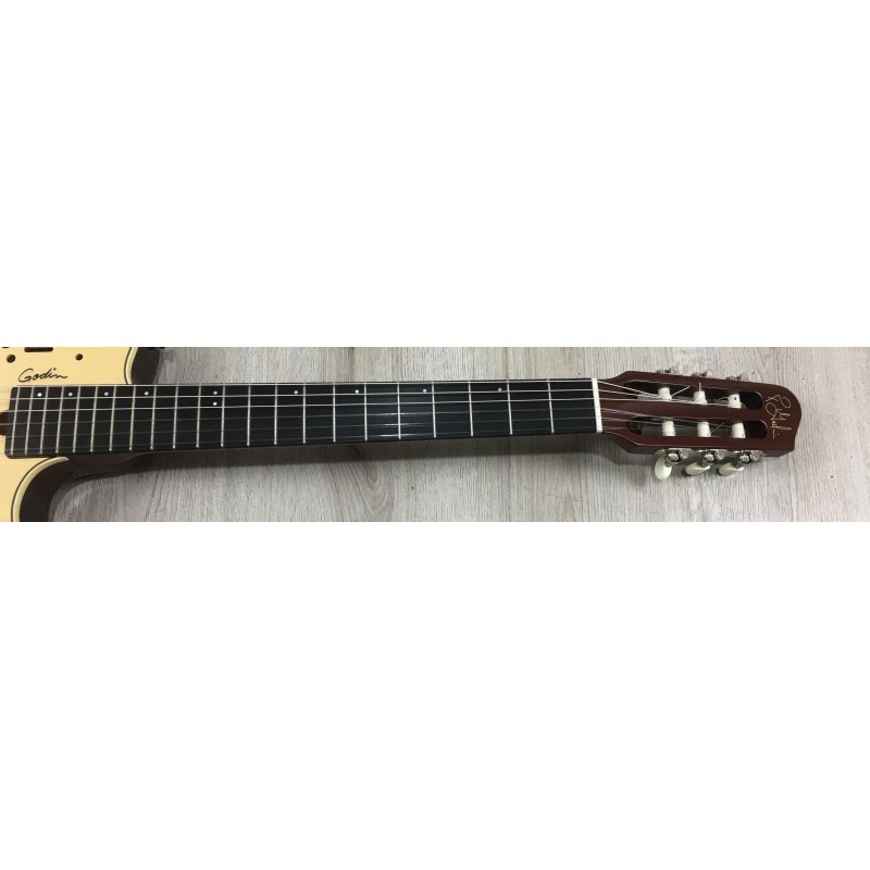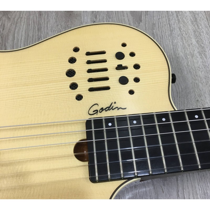 La Godin Multiac Nylon SA è una chitarra classica a corde di nylon che fonde un design acustico innovativo con un'elettronica all'avanguardia per l'uso live senza feedback. Caratterizzata da un corpo in mogano con due camere tonali e un top in abete massello, offre un timbro ricco e bilanciato che si adatta a vari generi musicali. Il sistema di pickup esafonico RMC Custom include un connettore a 13 pin, permettendo l'accesso diretto a sintetizzatori per chitarra come la serie Roland GR. La tastiera radiata e il manico confortevole la rendono ideale anche per chi è abituato alle chitarre elettriche o acustiche con corde in metallo.