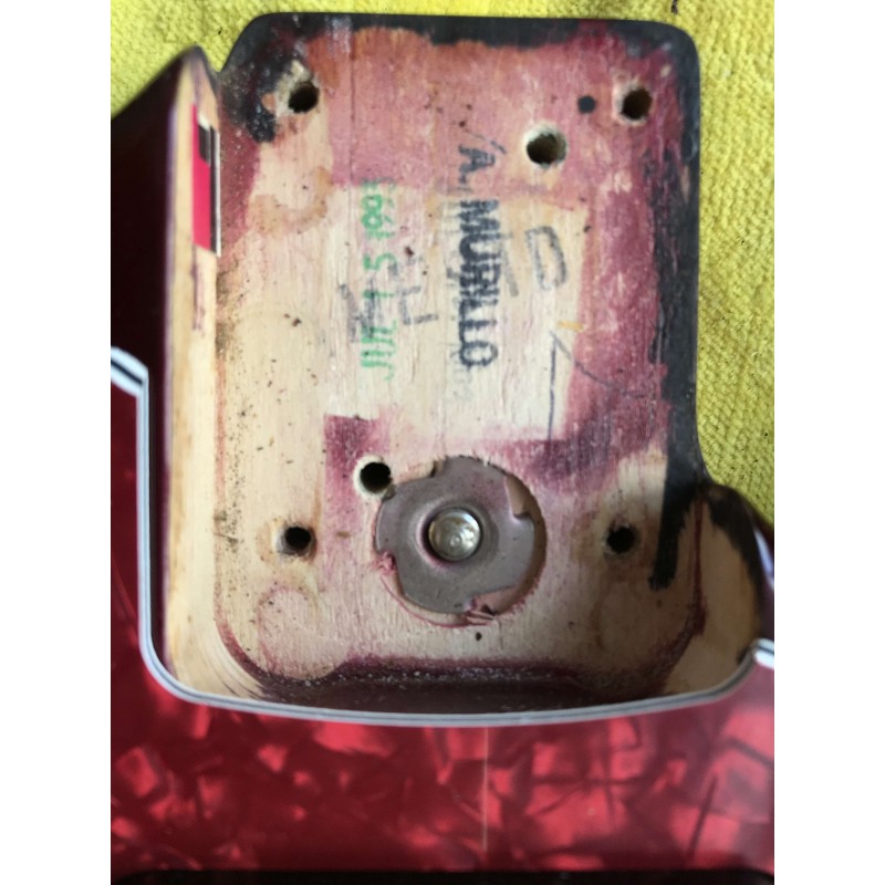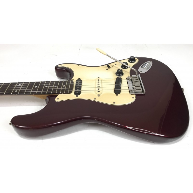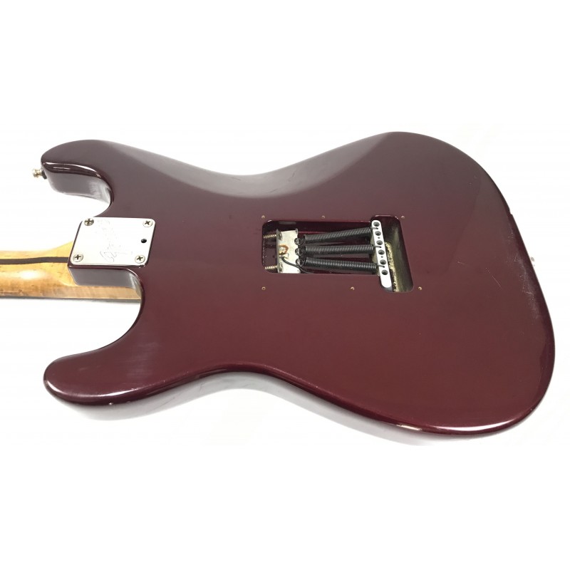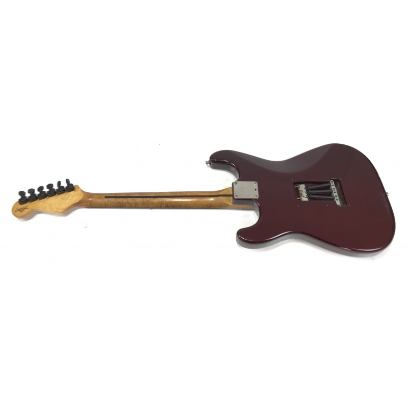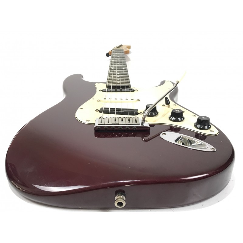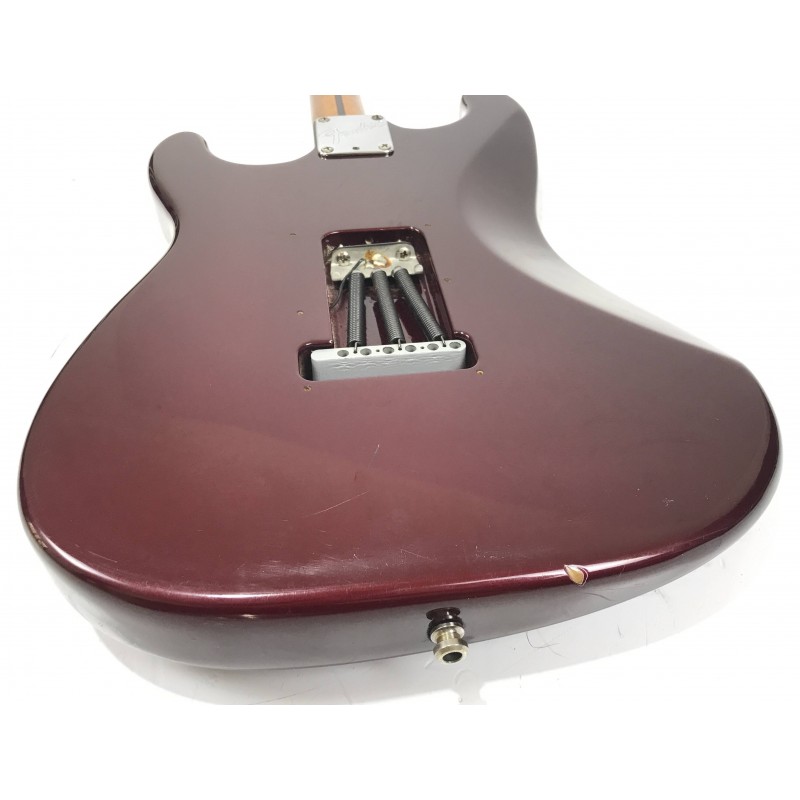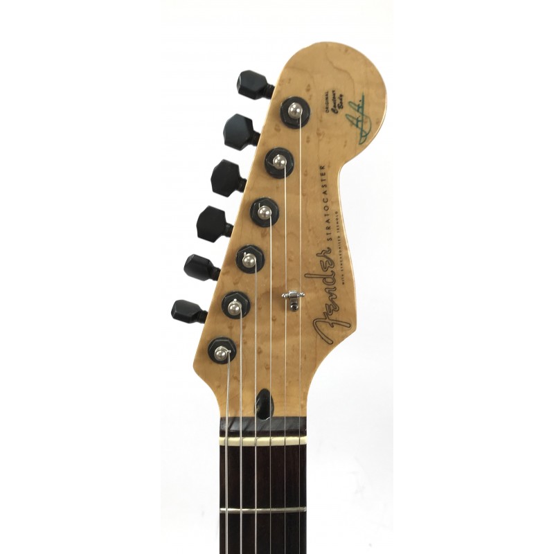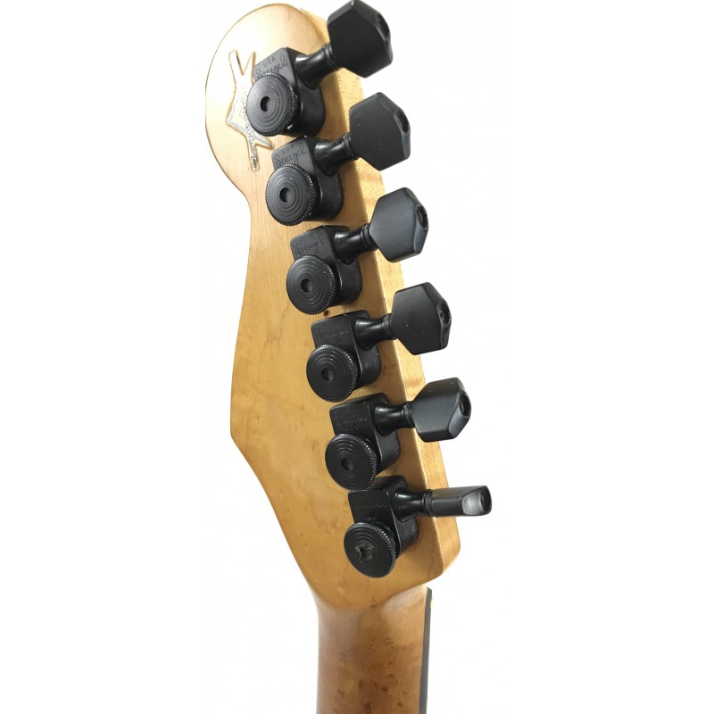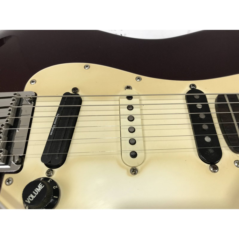 Chitarra elettrica Fender assemblata con corpo american standard del 1993, manico allparts in acero occhiellato, meccaniche autobloccanti Sprezel, elettronica formata da Seymour Duncan hotrails al ponte, pickup fender al centro e pickup PW al manico3
