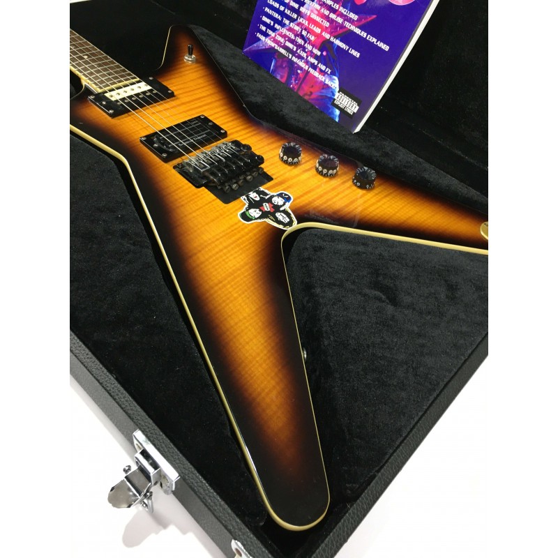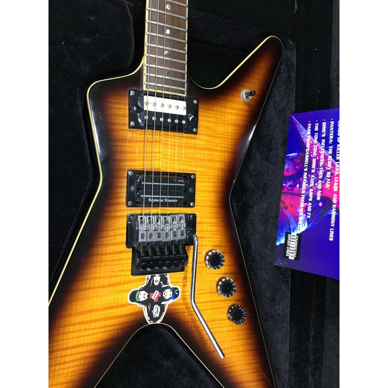 La Dean FBD Far Beyond Driven Dimebag Tribute ML è una chitarra elettrica solid body con finitura vintage Brazillaburst, ponte floyd rose, corpo e manico in mogano, top in acero fiammato, elettronica a due pickup humbucker con Seymour Duncan Dymebucker al ponte