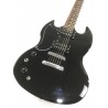 L'Harley Benton DC-200 LH BK Student Series è una chitarra elettrica mancina creata su modello SG con corpo in pioppo, manico in mogano e tastiera in palissandro, elettronica a due pickup humbucker con selettore a tre posizioni, controllo volume e tono.
