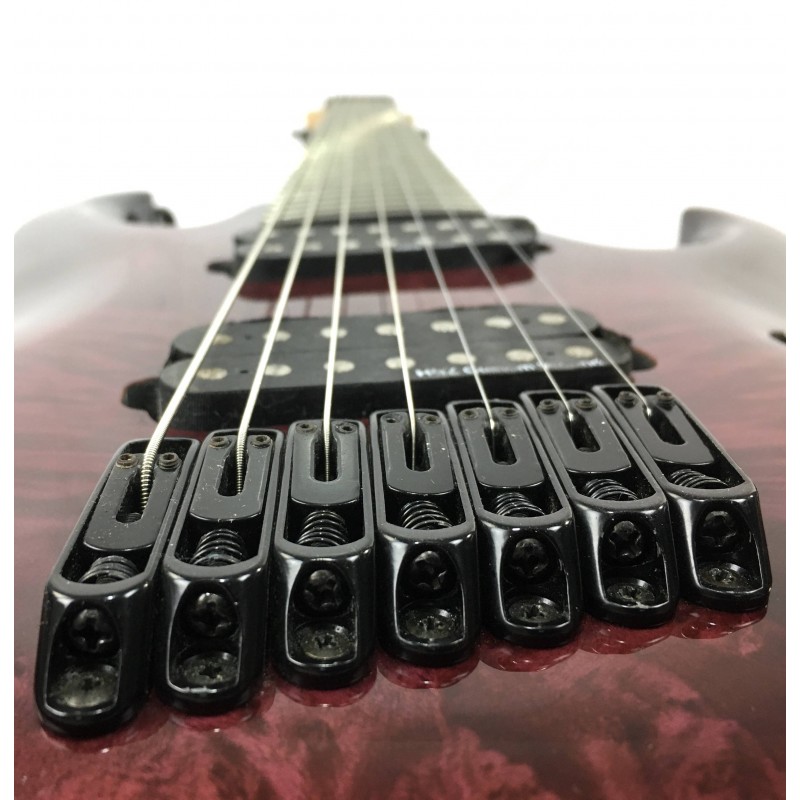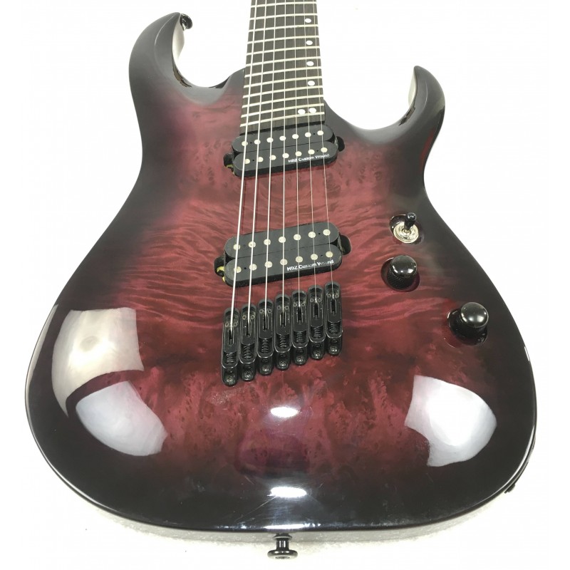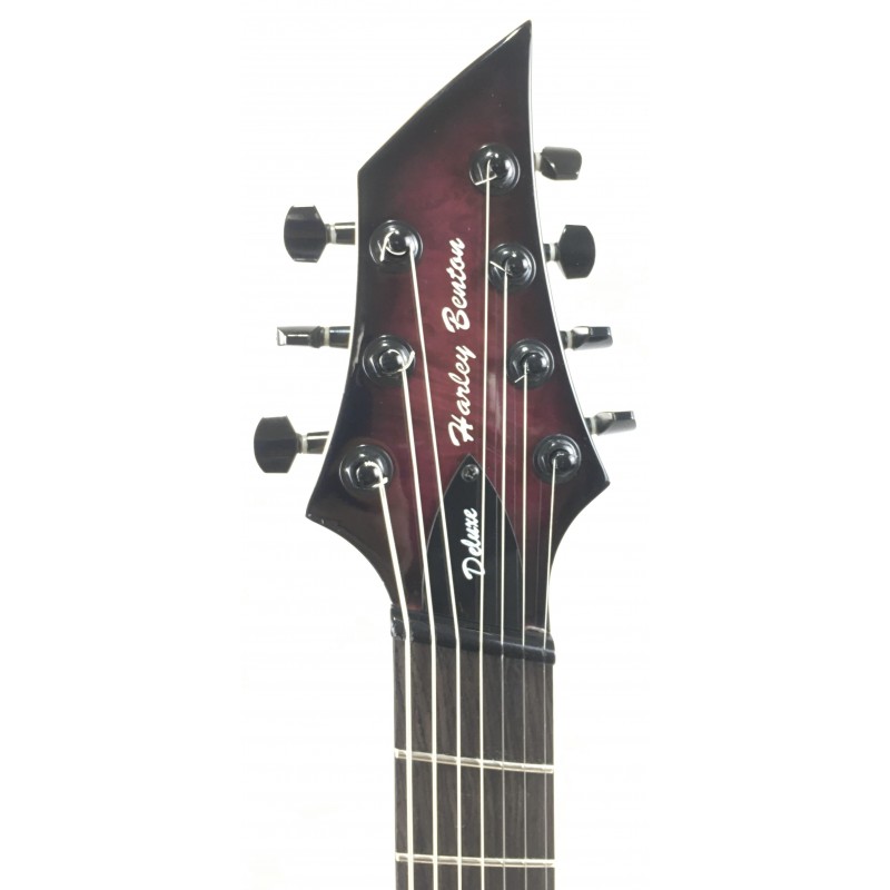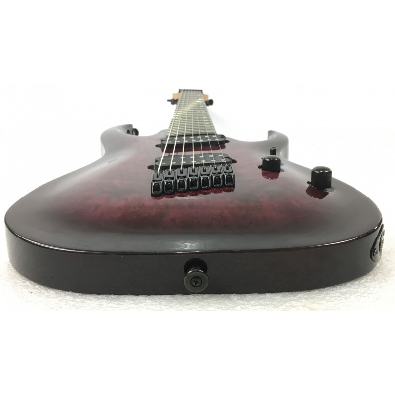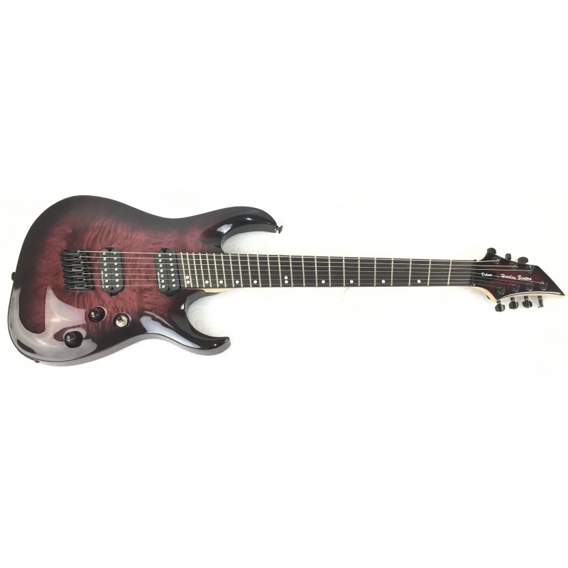 La Harley Benton FanFret-7 Progressive Purple Burst è una chitarra elettrica 7 corde a 24 tasti fanned. Corpo in tiglio, manico 5 pezzi acero e nato, elettronica a due pickup humbucker con selettore a tre posizioni e switch single coil sul potenziometro volume, meccaniche autobloccanti, hardware nero. grande suonabilità, tastiera precisisa e suono dettagliato e potente.
