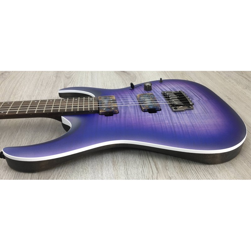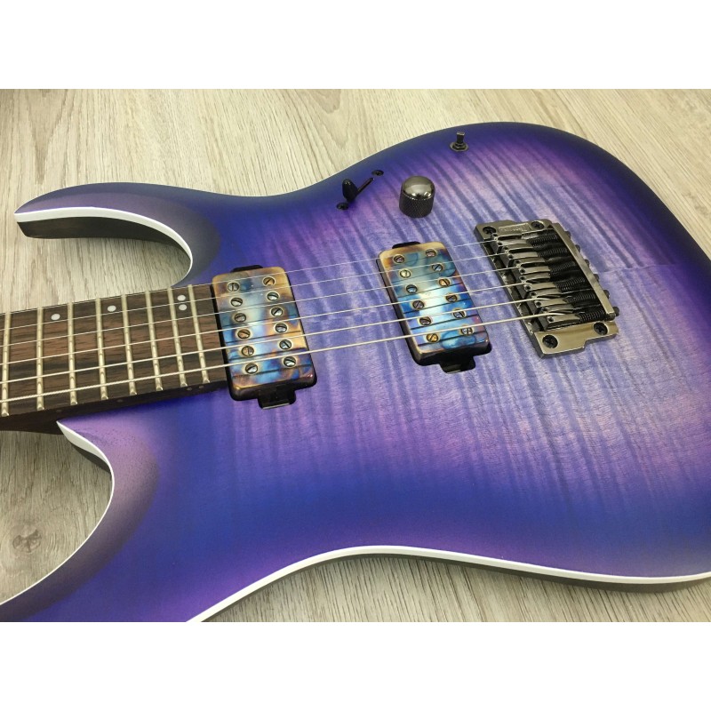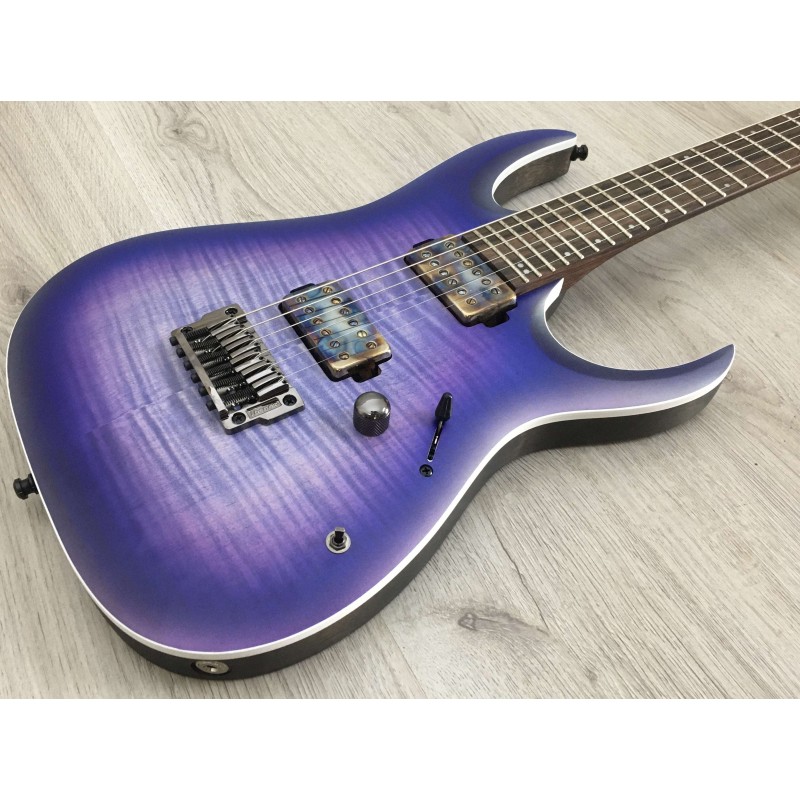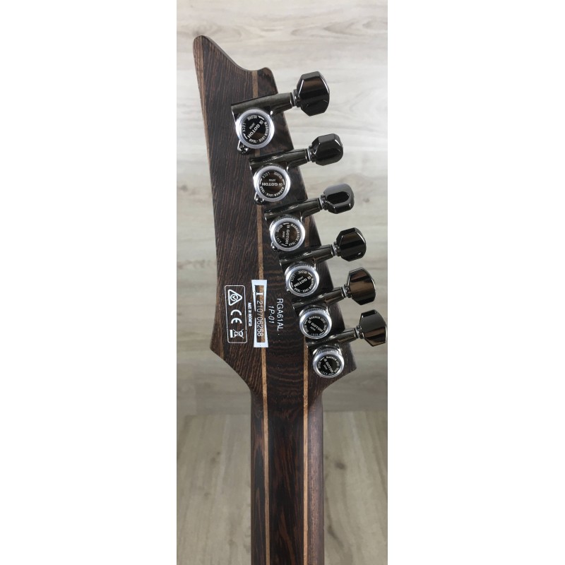 L'Ibanez RGA61AL Indigo Aurora Burst Flat è una chitarra elettrica solid body che fa parte della serie Axion Label che rappresenta la nuova frontiera di pensare e costruire chitarre. Manico Nitro Wizard in Panga anga e noce, corpo in nyato, top in acero fiammato, tastiera in ebano macassar, tasti jumbo sub zero, meccaninche gotoh MG-T autobloccanti, pickucp bare knuckle aftermath con selettore a tre vie e split coil