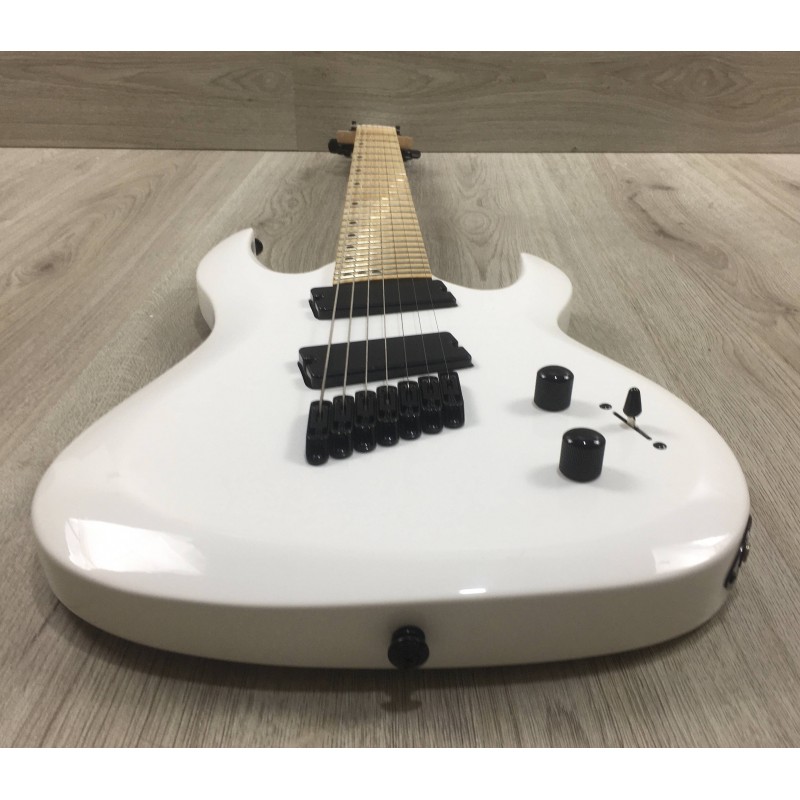 La Harley Benton R-457MN WH Fanfret è una chitarra elettrica 7 corde che fa parte della serie Progressive, manico e tastiera in acero con profilo speed D, 2 pickup humbucker ad alto guadagno con selettore a tre posizioni, controlllo volume e tono, corpo in tiglio, e tasti fanned
