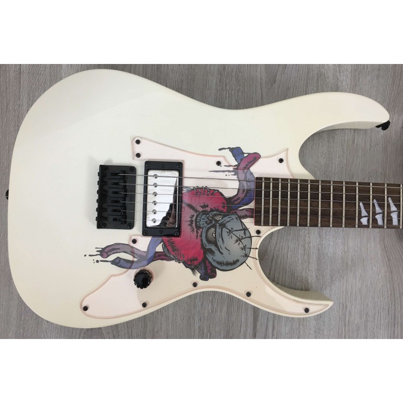 L'Ibanez GRGR010LTD è una chitarra elettrica solid body costruita in edizione limitata nel 2010. corpo in tiglio, manico in acero, tastiera in palissando, singolo pickup humbucker con controllo di volume. Serigrafia Skeleton e inlay al 12 tasto