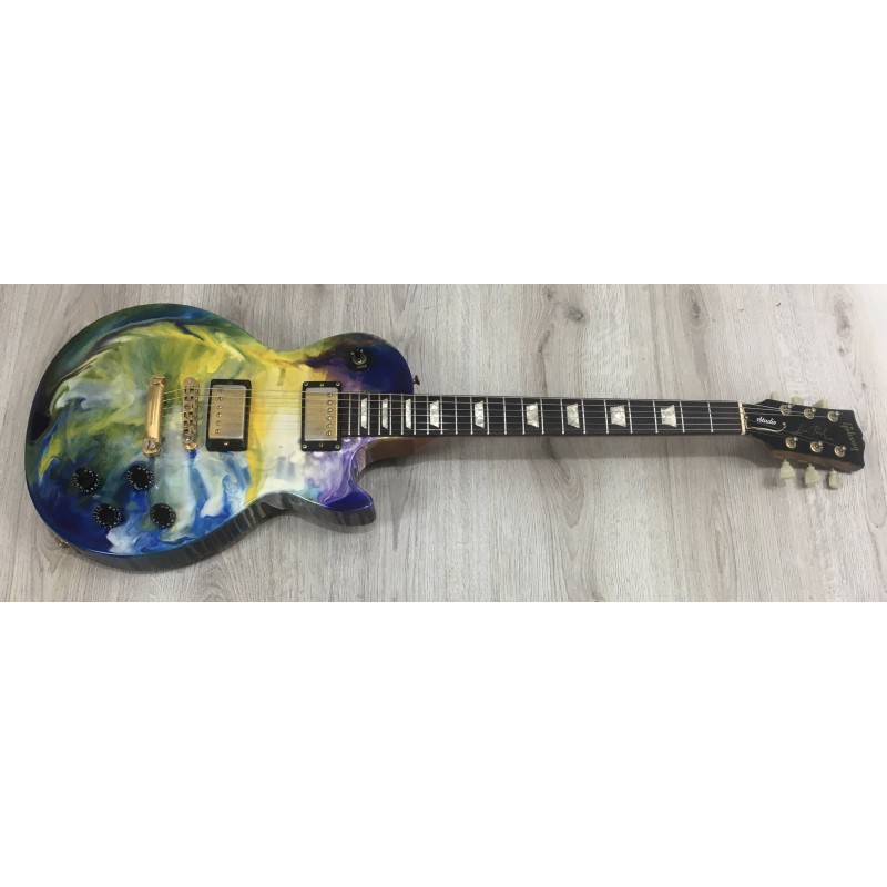 La chitarra Gibson Les Paul Studio è una versione semplificata e moderna della Les Paul classica, pensata per offrire lo stesso suono caldo e potente a un prezzo più accessibile. Ha corpo in mogano con top in acero, due humbucker Gibson e hardware Tune-O-Matic. Meno decorata ma robusta e versatile, è ideale per studio e live. Mantiene il tipico timbro Les Paul: ricco, pieno e con grande sustain armonico.