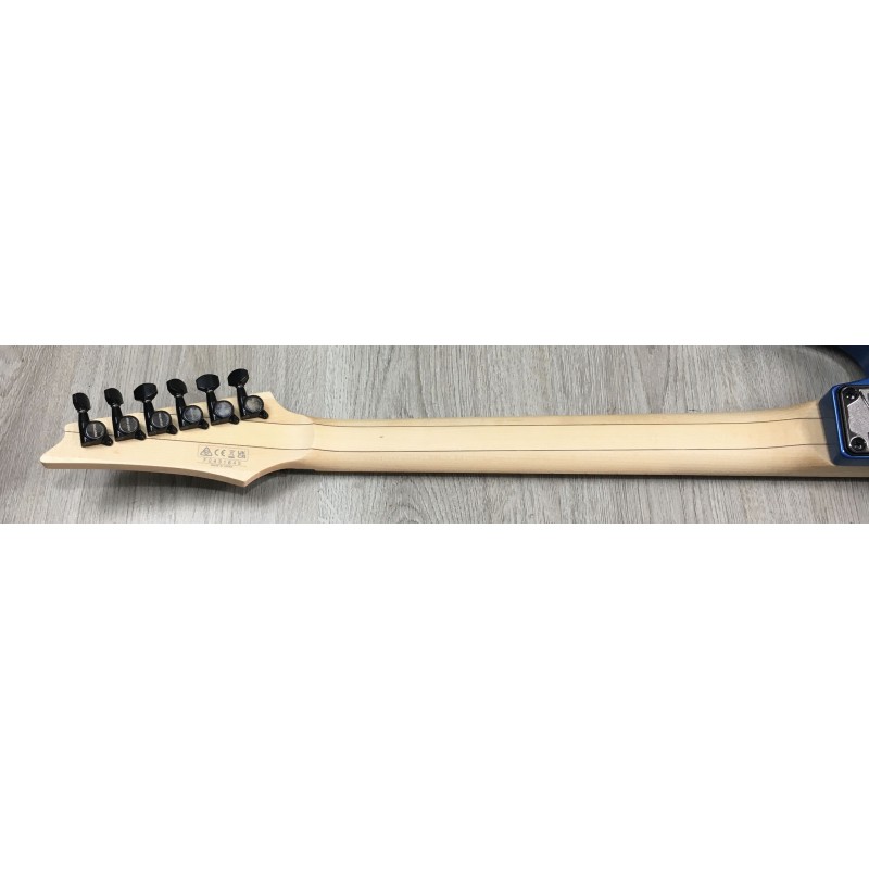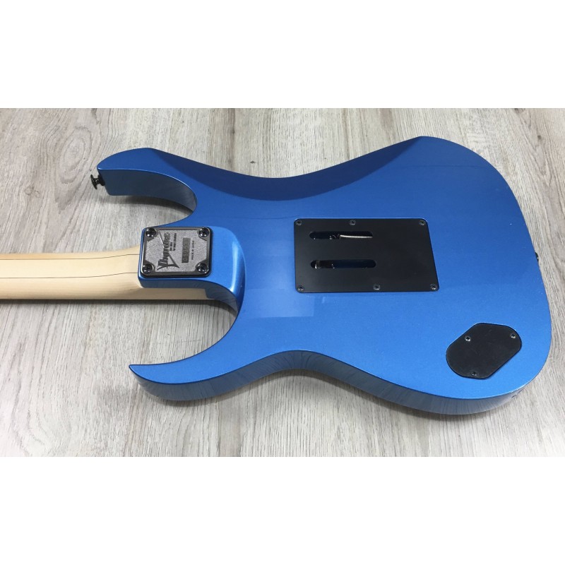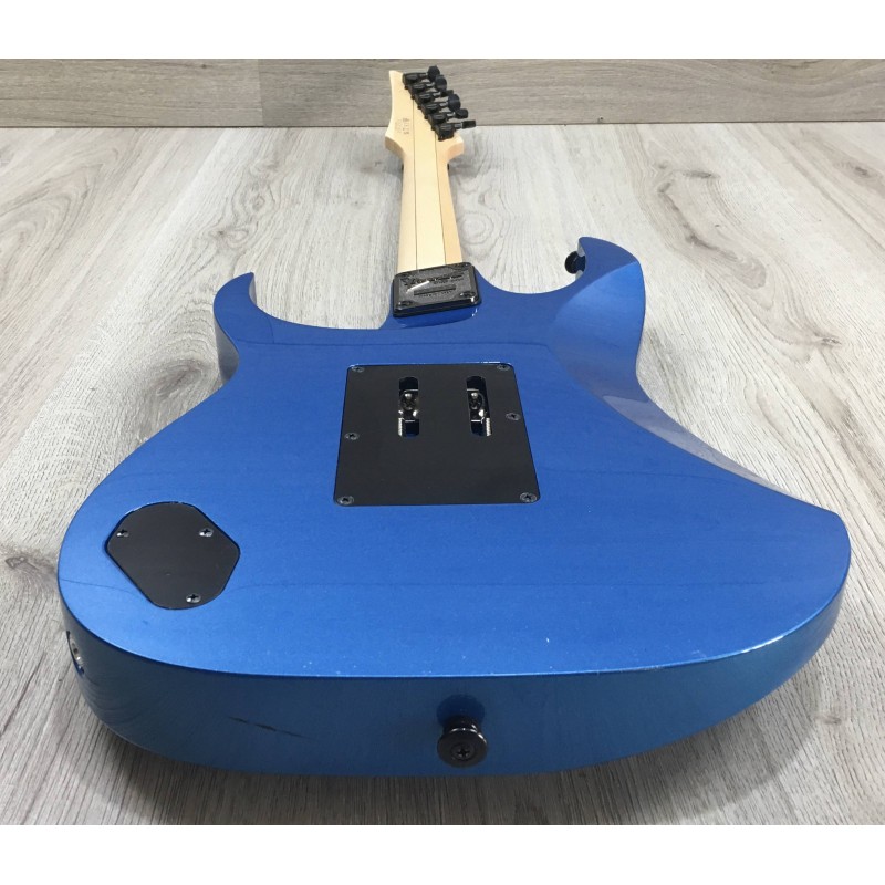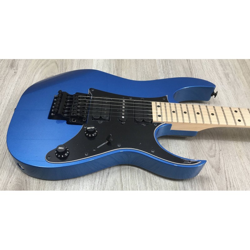 La Ibanez RG550 EB Electric Blue è una chitarra elettrica superstrat Made in Japan della serie Genesis Collection, iconica per rock e metal tecnico. Ha corpo in tiglio, manico Super Wizard in acero/nocciolo 5 pezzi e tastiera in acero con 24 tasti jumbo per massima velocità. Configura un set HSH Ibanez V7–S1–V8, versatile tra suoni brillanti e distorti ad alto gain. Il ponte Edge double-locking tremolo assicura stabilità d'accordatura anche con uso intenso della leva.