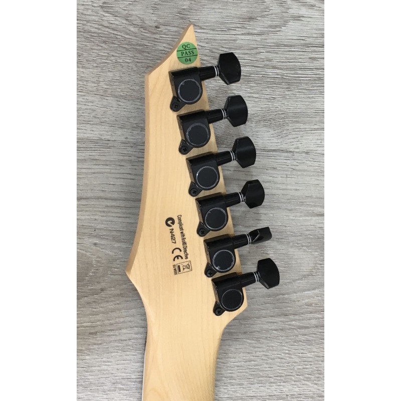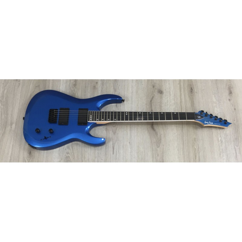 La Harley Benton R-446 è una chitarra elettrica della serie Progressive, progettata per offrire prestazioni moderne a un prezzo accessibile. Presenta un corpo in pioppo sagomato per il massimo comfort e un manico in acero canadese dal profilo "Slim" con 24 tasti jumbo, ideale per generi veloci come rock e metal. La configurazione elettronica include due humbucker Artec Ceramic e un selettore a 5 vie che permette un'ampia varietà di sfumature timbriche, dal cristallino al distorto pesante. Il design è completato da un ponte hardtail che assicura stabilità di accordatura e un look accattivante con hardware nero