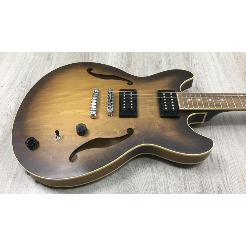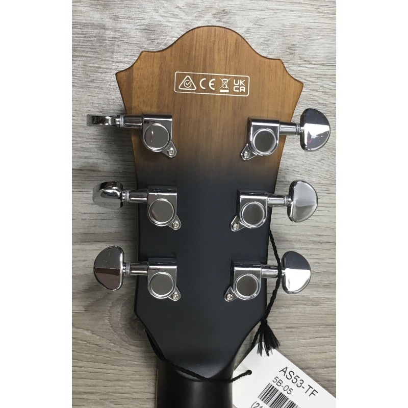 La Ibanez AS53-TF è una chitarra elettrica semi-acustica della serie Artcore con finitura Tobacco Flat. Ha corpo semi-hollow in sapele e manico set-in in nyatoh con tastiera in noce, comoda e scorrevole. Monta due humbucker Infinity R, adatti a sonorità calde e versatili. È ideale per jazz, blues e rock, con un ottimo rapporto qualità-prezzo.