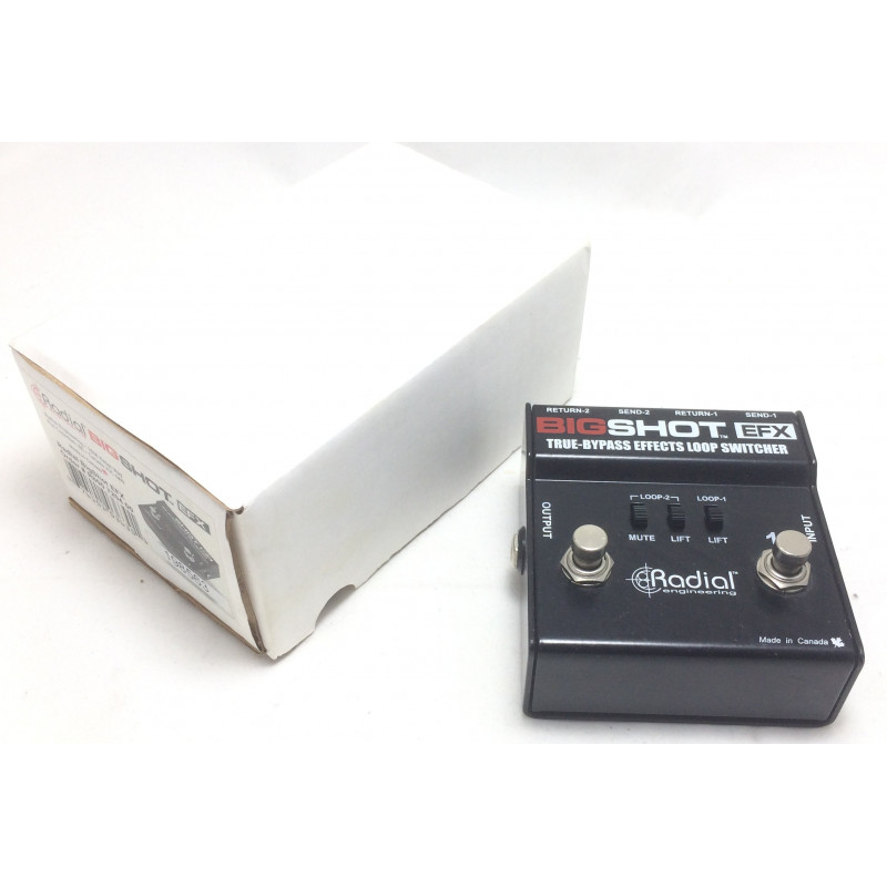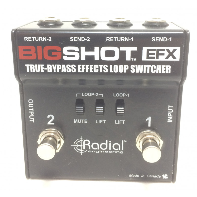 Il Radial Big Shot EFX è un pedale selettore doppio loop effetti indipendenti true bypass che non ha bisogno di alimentazione. i loop possono essere utilizzati indipendentemente o sommati