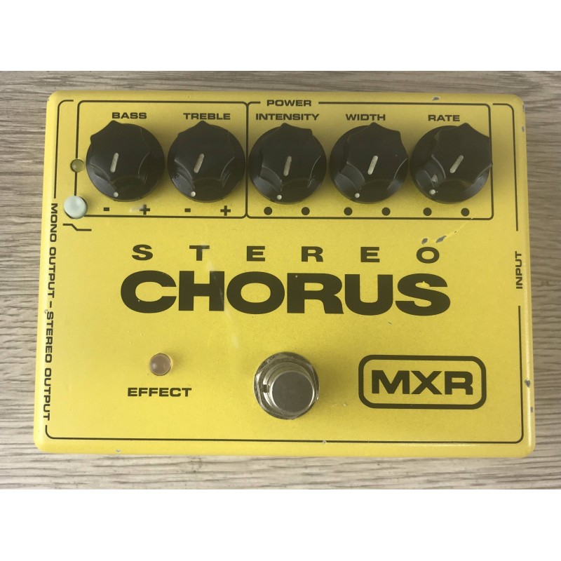 L'M134 Stereo Chorus di MXR è un pedale di fascia alta, è alimentato con due batterie 9V o con alimentatore esterno opzionale. E' molto semplice da utilizzare, i controlli width e rate vi permetteranno di regolare la profondità e il ciclo del chorus mentre con intensity è possibile miscelare il suono processato con quello pulito, oltre a questi controlli una sezione eq formata da alti e bassi vi permetterà di regolare ulteriormente il suono. Il tasto Mono vi darà la possibilità di utilizzarlo in mono o in stereo a seconda dell'esigenza
