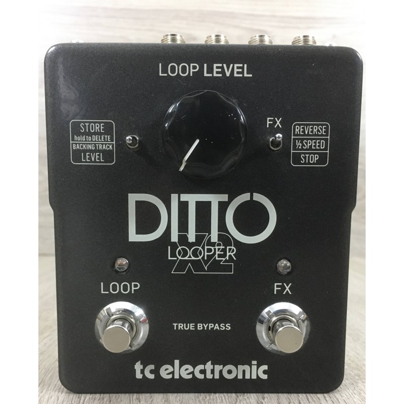 Il Ditto Looper X2 di Tc Electronic è una loopstation con ingresso mono/stereo che oltre ad avere la sezione di looping con 5 minuti di registrazione no sto a 24 bit, la possibilità di importare ed esportare le traccie attraverso computer, le connessioni true bypass ha anche una serzione effetti con la quale è possibile mandare in reverse la traccia registrata oppure dimezzarne la velocità